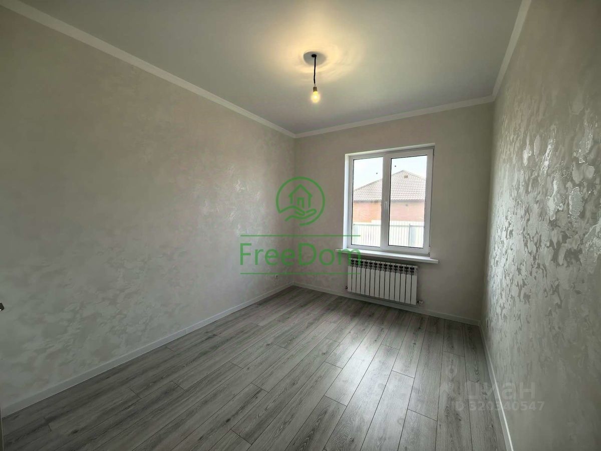 Общая площадь составляет 82 квадратных метра. В доме имеются три спальни, совмещенный санузел и просторная кухня-гостиная площадью 20 квадратных метров с выходом на террасу. Во всех помещениях выполнен качественный ремонт. В коридоре, санузле и кухне-гостиной пол покрыт керамической плиткой, а в спальных комнатах ламинатом. Натяжные потолки установлены по всему периметру дома, а стены оклеены обоями. В санузле установлена ванна, унитаз и раковина с тумбочкой.