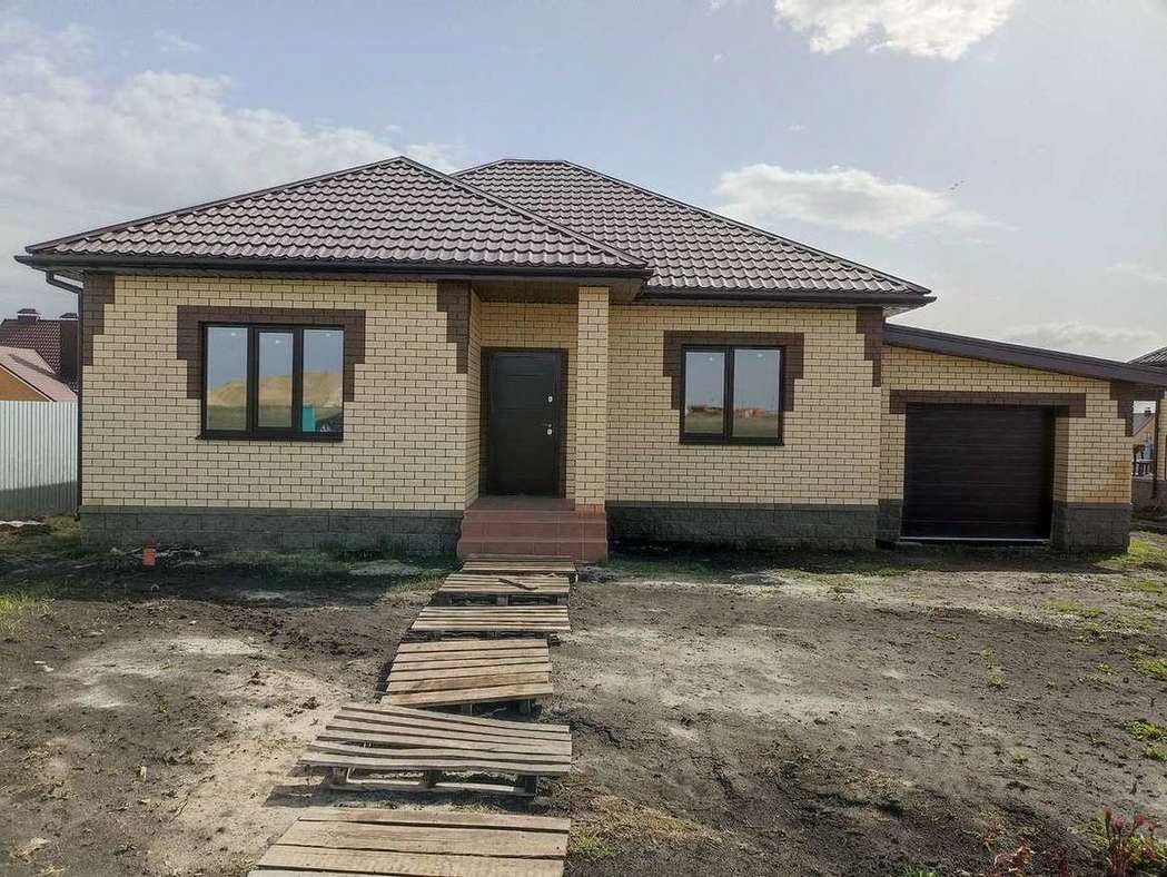 Планировка: три спальни, кухня-гостиная с террасой, прихожая, раздельный санузел, гараж.