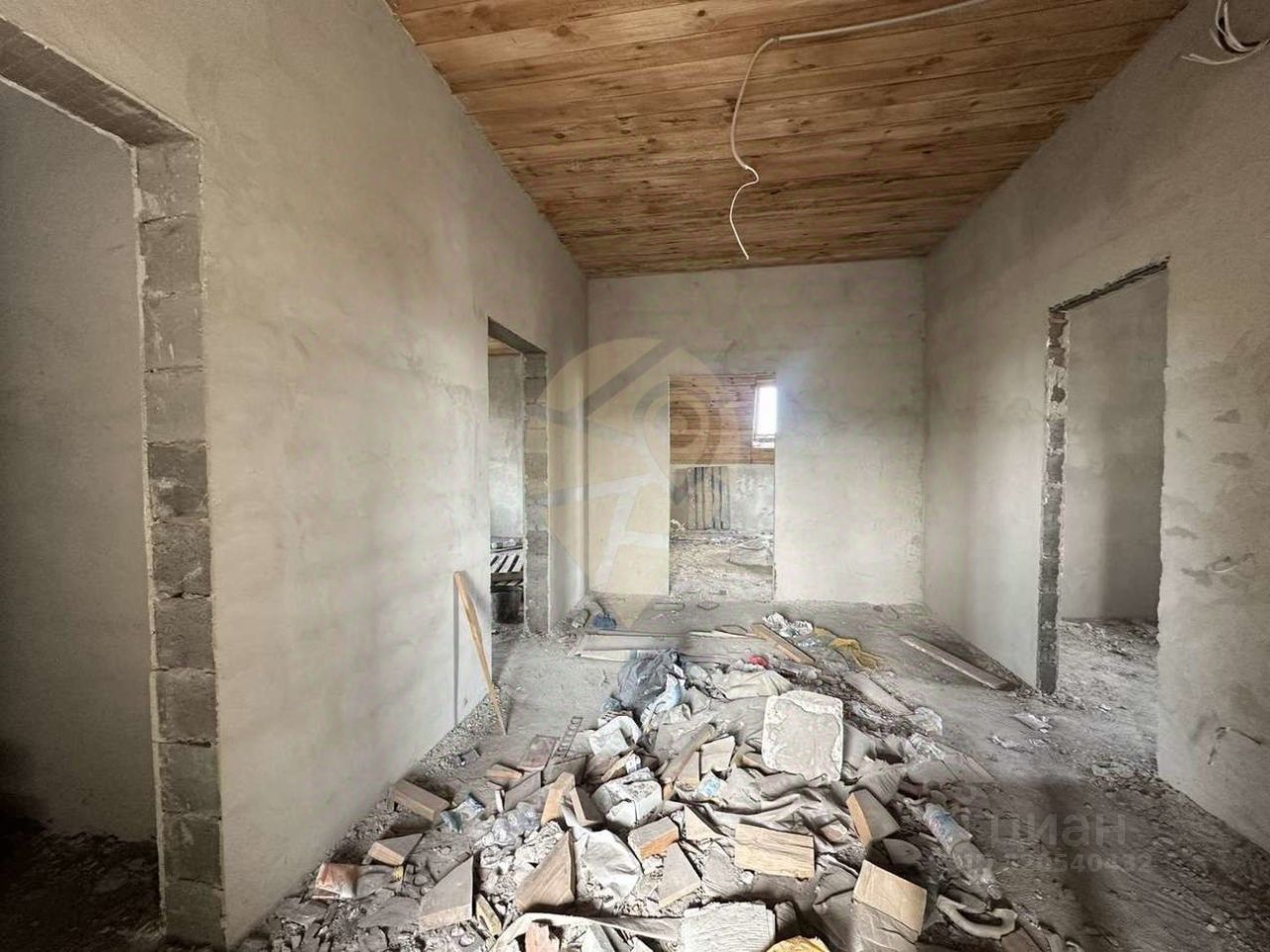 • 1 этаж: кухня, зал, спальня, санузел. • 2 этаж: две спальни, холл, санузел. • Под половиной дома подвал (планировалась котельная).