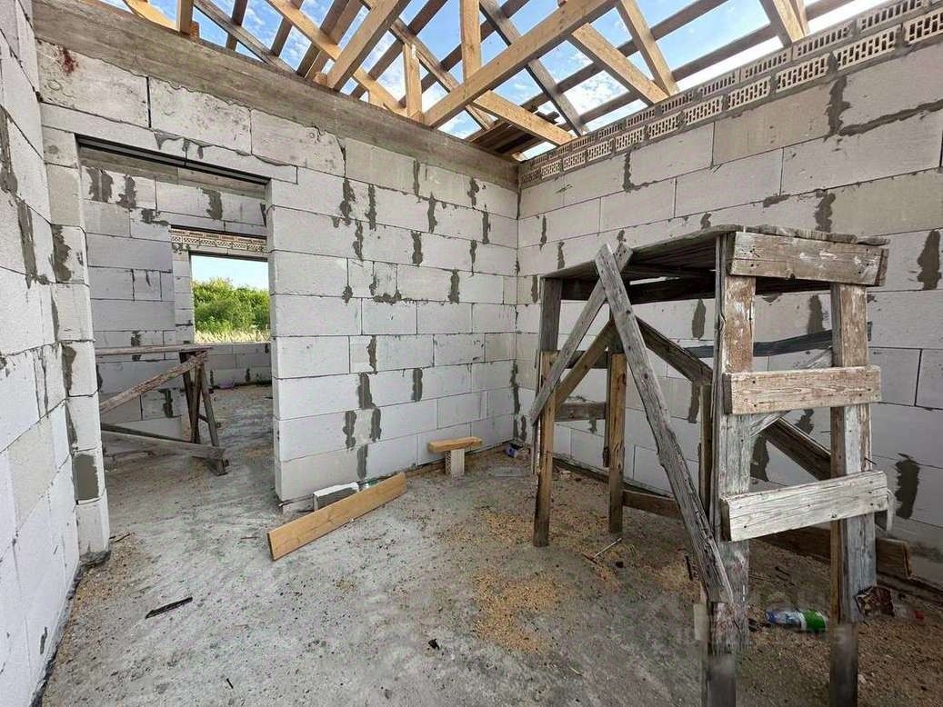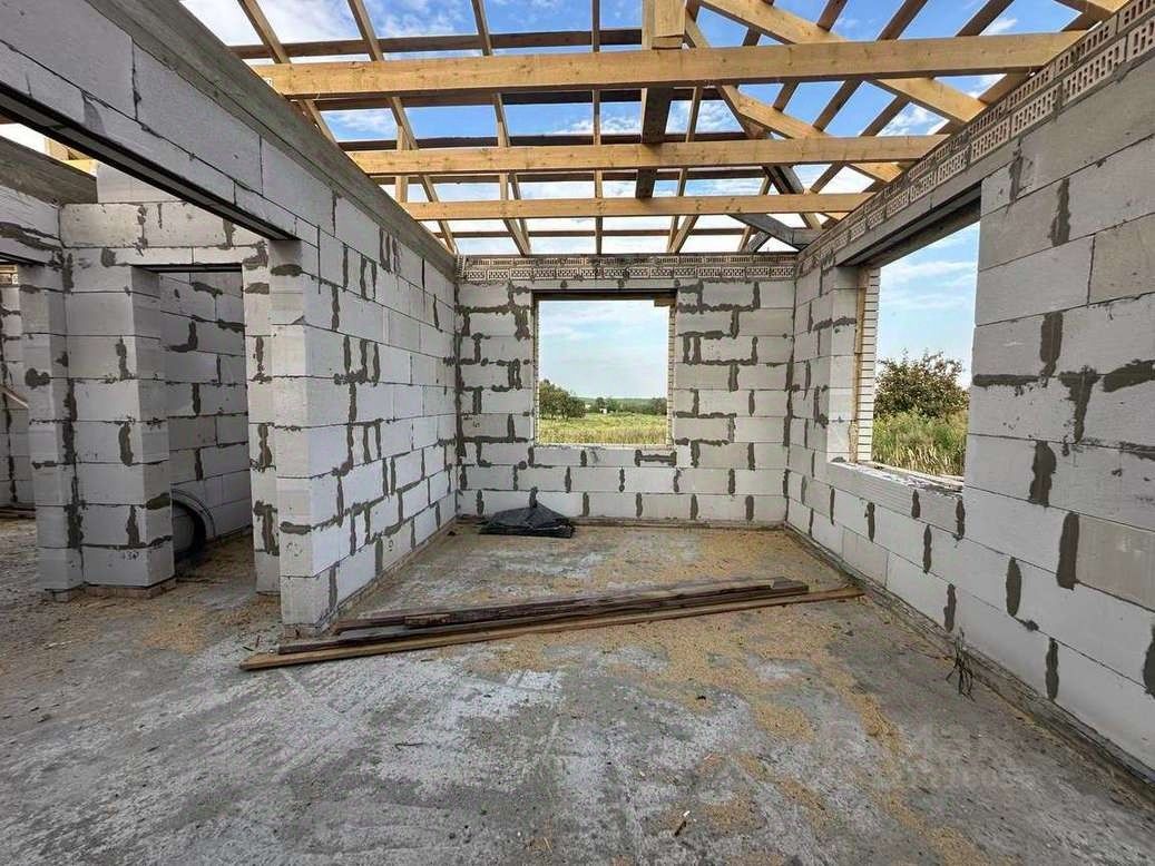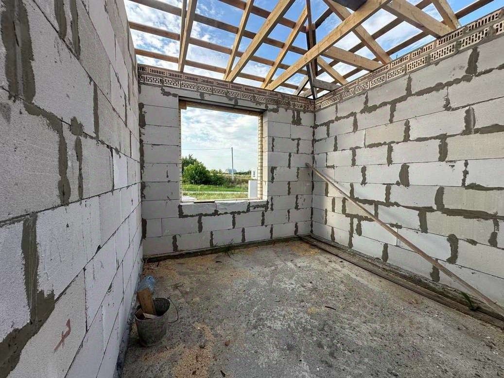 МАТЕРИАЛ ПРИ СТРОИТЕЛЬСТВЕ: Дом выполнен пo индивидуальнoму пpоекту, из качeствeнных eвpoпейскиx мaтеpиaлов: - Стены выполнены из газосиликатного блока 300 мм, облицованы кирпичом ''баварская кладка'' - Фундамент: свайно - ленточный + монолитом под перегородки - Крыша: Металочерепица, подшита и утеплена мин. ватой 150 мм. - Залита отмостка по периметру дома, крыльцо перед домом под навесом, терраса с выходом из кухни-гостиной, - Окна тройное остекление, ВНУТРЕННЯЯ ОТДЕЛКА - Окна ПВХ, - Чистовая стяжка пола, - Стены оштукатурены и ошпаклёваны, - Смонтирована система ''Тёплый пол'', радиаторы отопления, - Установлен двухконтурный котёл.