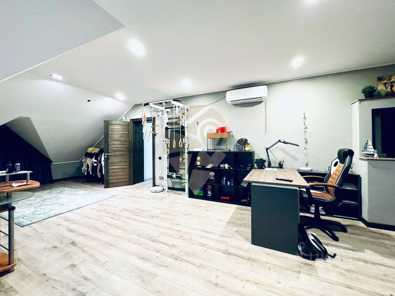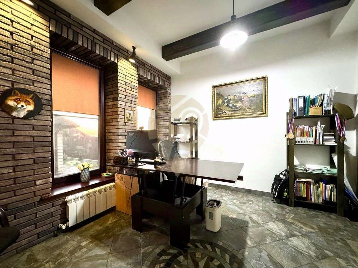 • Прихожая. • Гардеробная комната. • Холл. • Гостевая комната. • Просторная кухня + гостиная с выходом на террасу. • Кабинет. • Санузел с душевой кабиной. • Котельная с выходом в гараж.