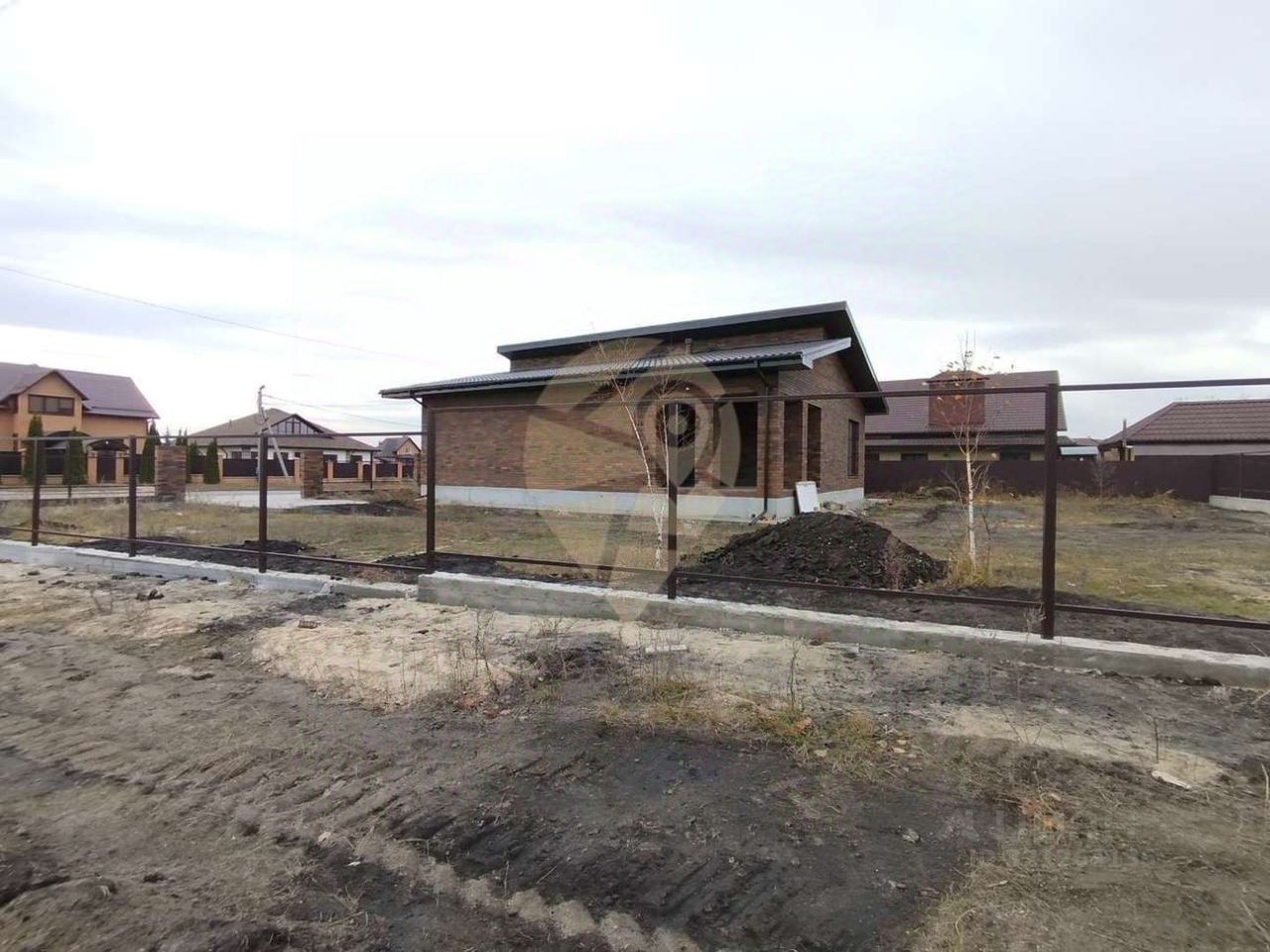 • Фундамент свайно-ленточный. • Стены - газосиликатный блок (300 мм), утеплены, облицованы кирпичом. • Окна ПВХ (тройное остекление). • Стены оштукатурены, ошпаклеваны, готовы к поклейке обоев. • Крыша - металлочерепица, подшита, утеплена мин. ватой (150 мм). • Смонтирована система ''Тёплый пол''. • Установлены радиаторы отопления. • Отмостка по периметру. • Во дворе залита бетонная площадка под парковочное место. • Крыльцо. • Терраса. • Забор на фундаменте с фасадной стороны.