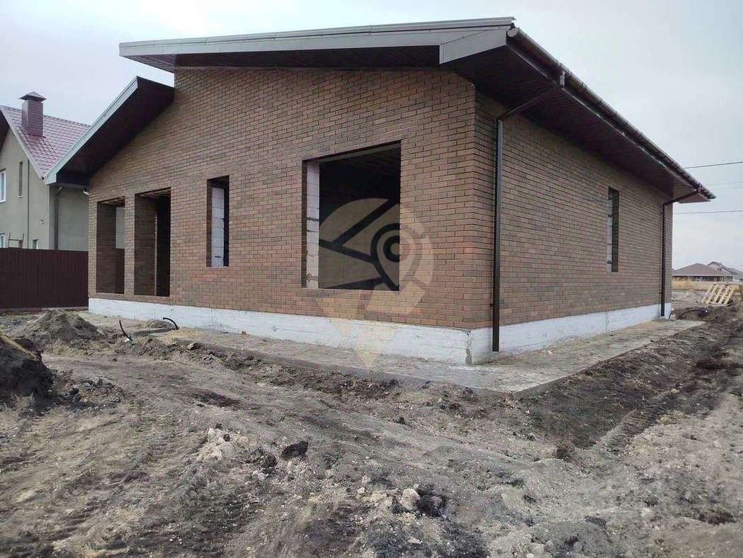 • Фундамент свайно-ленточный. • Стены - газосиликатный блок (300 мм), утеплены, облицованы кирпичом. • Окна ПВХ (тройное остекление). • Стены оштукатурены, ошпаклеваны, готовы к поклейке обоев. • Крыша - металлочерепица, подшита, утеплена мин. ватой (150 мм). • Смонтирована система ''Тёплый пол''. • Установлены радиаторы отопления. • Отмостка по периметру. • Во дворе залита бетонная площадка под парковочное место. • Крыльцо.