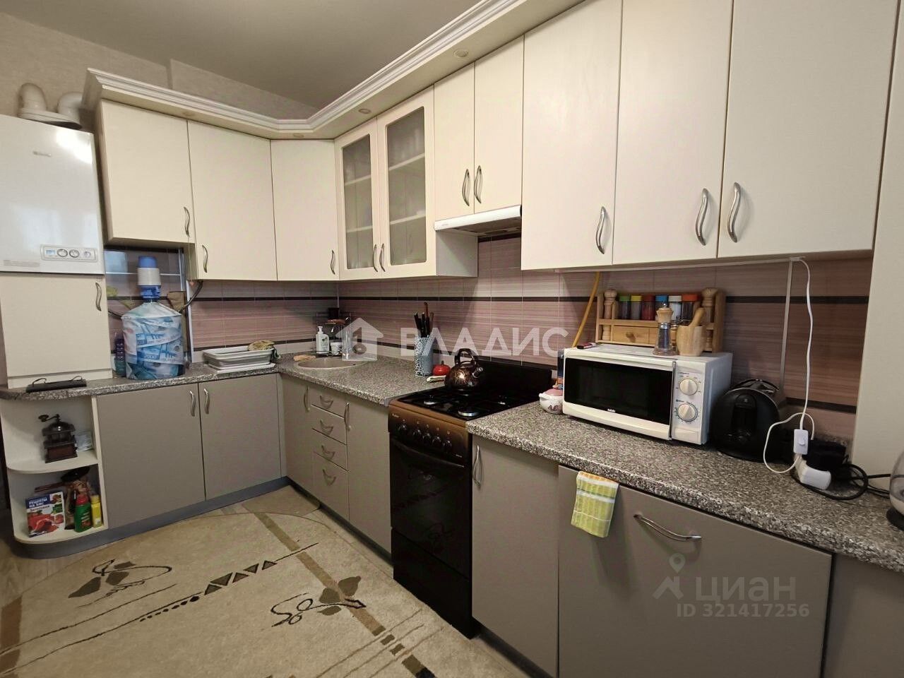 Индивидуальный котёл обеспечивает эффективное и экономичное отопление, а расположение квартиры не в угловом положении способствует хорошей теплоизоляции.