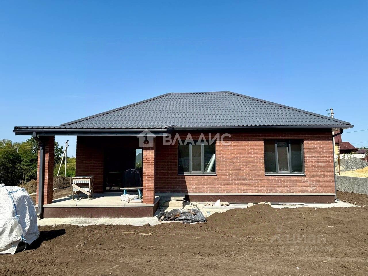 В доме три комнаты, общая площадь — 120 кв. с выходом на крытую террасу 12 кв.м. Дом одноэтажный, расположен на участке площадью 9 соток, участок будет полностью огорожен забором.