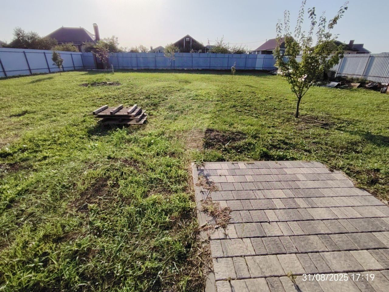 Двор огорожен с трех сторон, участок ровный, не угловой. Есть гараж со смотровой ямой. 90344