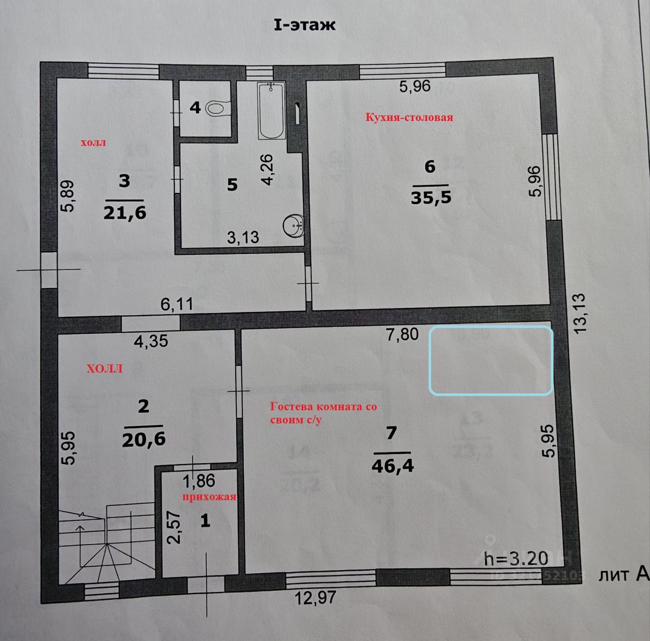 Отдельная гостевая комната со своим с/у и душевой ( шикарно подойдет для престарелых родителей) с возможностью обустроить и кухонную зону.