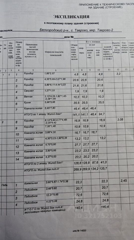 1 этаж - 141 м2, 2 этаж - 128 м2
