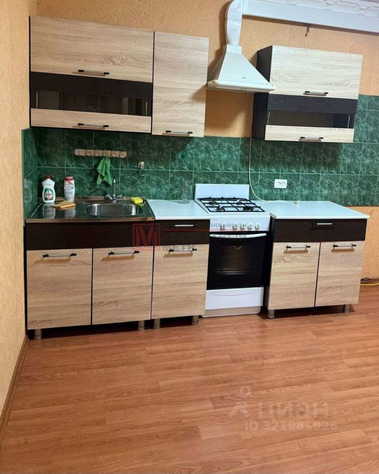 В квартире: большой шкаф купе, диван, кухонный гарнитур, плита, вытяжка