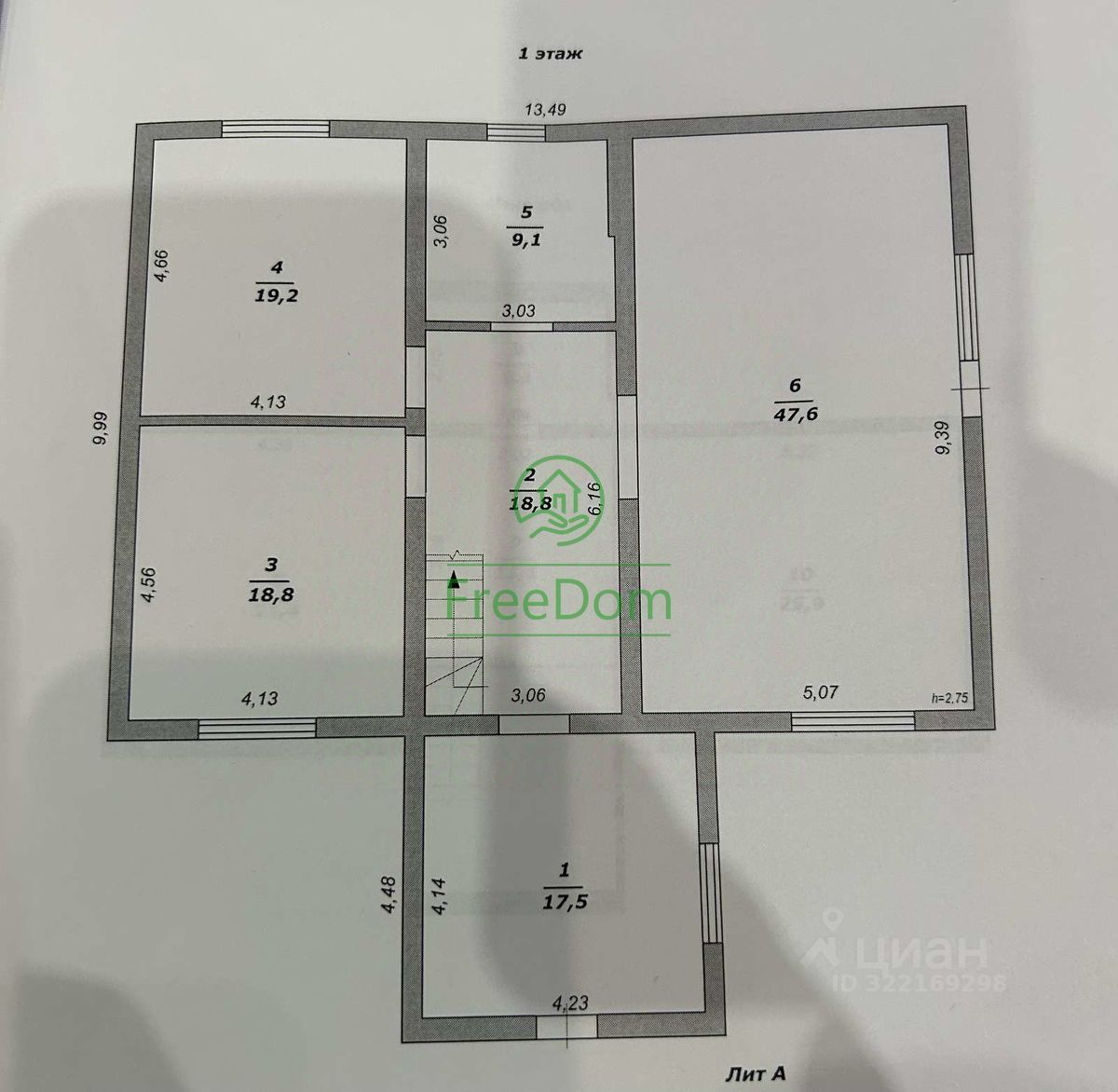 Целых 195 м простора с потолками 3 м!