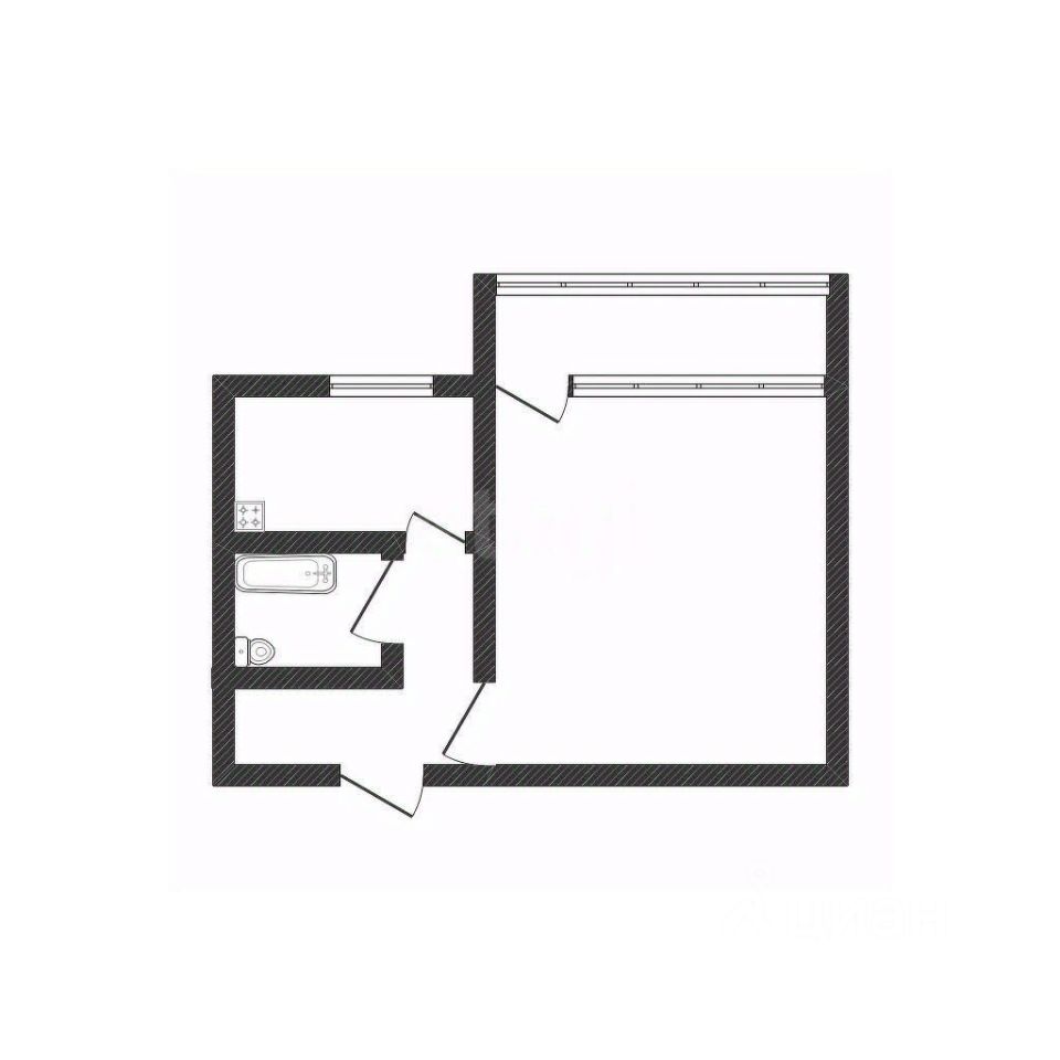 Квартира отличается рациональной планировкой: просторная комната, функциональный коридор и совмещенный санузел с централизованным горячим водоснабжением. Балкон застеклен, что увеличивает полезное пространство и позволяет использовать его круглогодично.