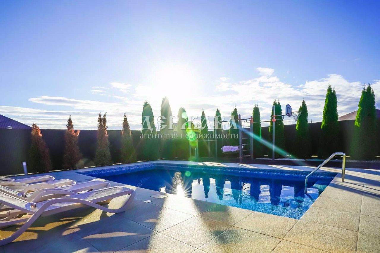 - большой бассейн с подсветкой, подогревом и системой очистки воды, для младших членов семьи - детская площадка и качели.