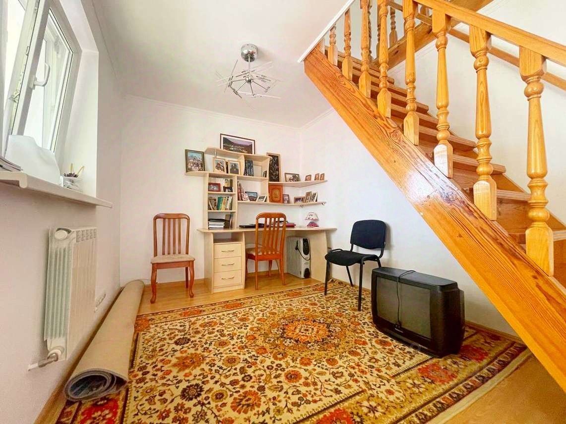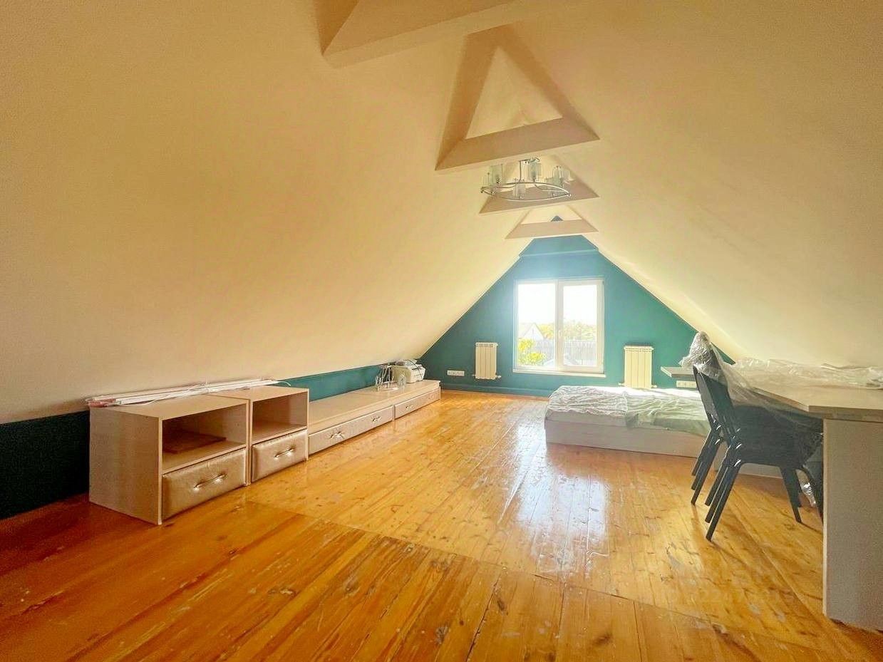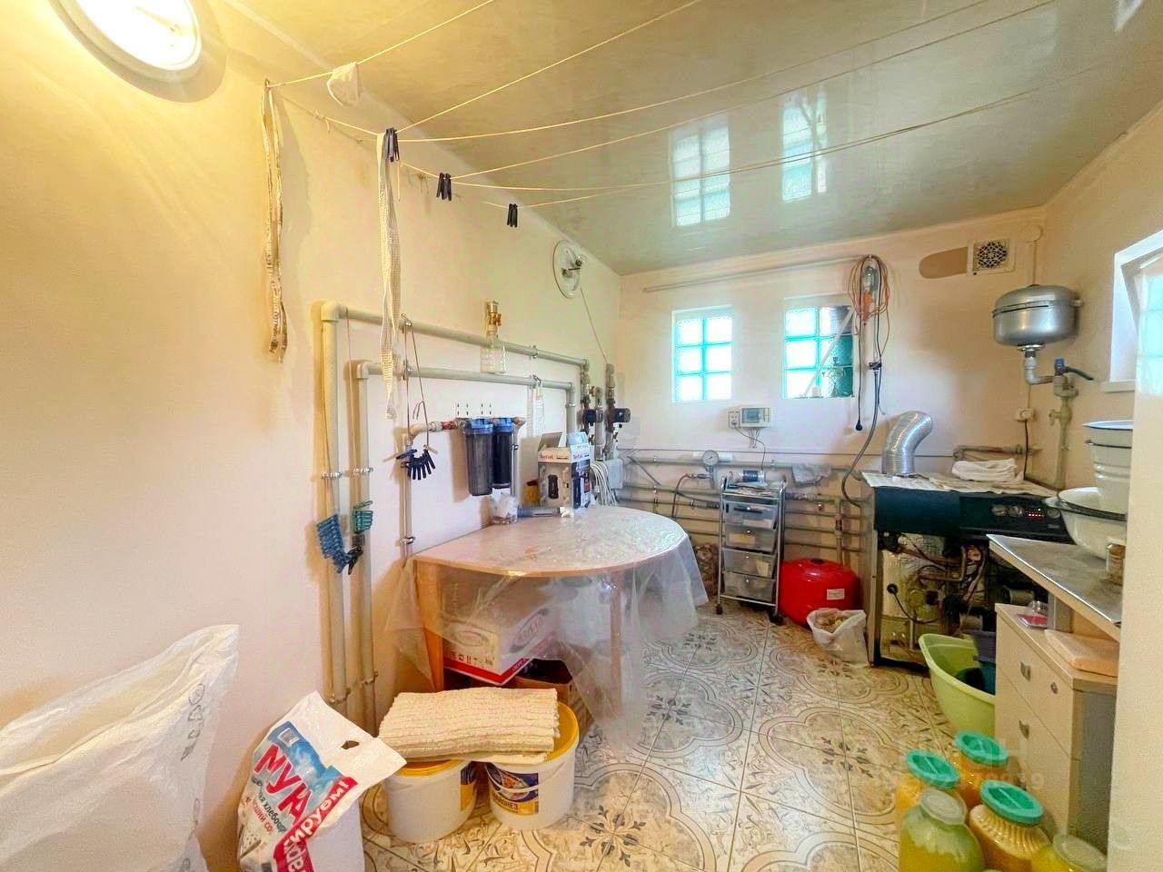 Все инженерные коммуникации в доме: центральное газо- и электроснабжение, скважина с водой, септик для канализации. Внутри два санузла, веранда, гардеробная, рабочий кабинет и котельная. Места для хранения предостаточно.