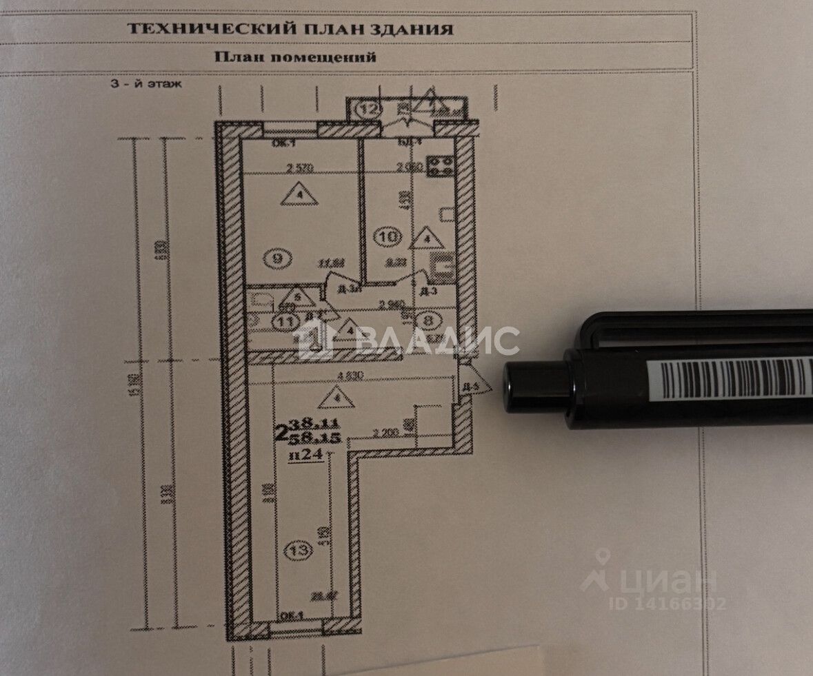 Планировка: - Общая площадь: 58,2 кв. м - Жилая площадь: 37,2 кв. м (комнаты 11,7 кв. м и 26,5 кв. м) - Площадь кухни: 9,3 кв.