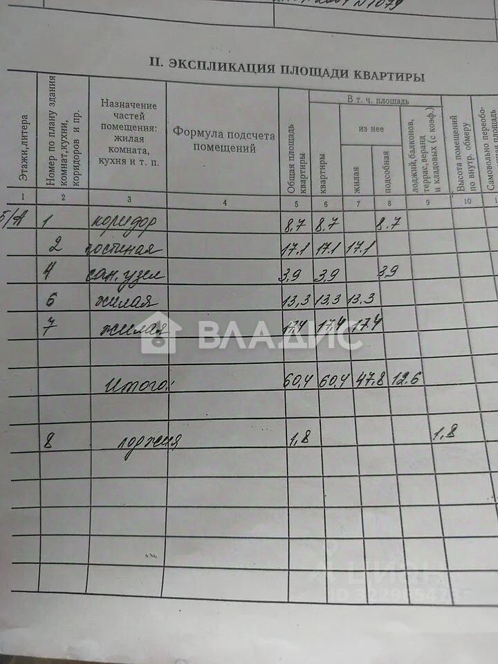 Основные характеристики: Год постройки: 1981. Материал постройки: кирпичный. Этаж: 5. Общая площадь: 60,4 кв. м. Жилая площадь: 30,7 кв. м. Площадь кухни: 17,1 кв. м.