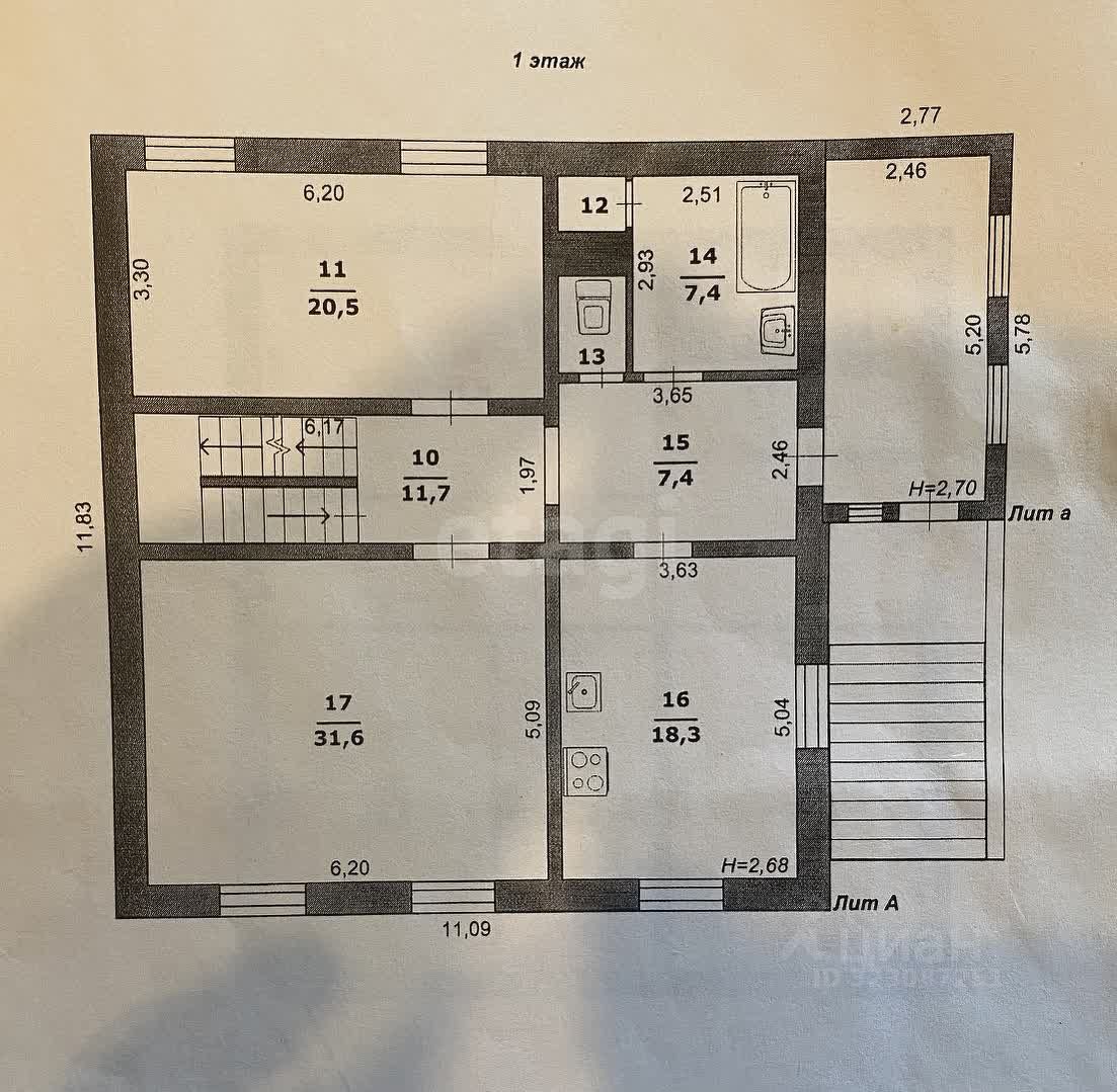 Дом теплый (построен из железобетонных панелей и облицован кирпичом. Планировка дома включает в себя: 1-й этаж 2 коридора, 2 жилые комнаты ( 31,6 м² и 20,5 м²), просторная кухня (18,3 м²), кладовая и раздельный санузел, 2-й этаж 2 коридора, 3 жилые комнаты ( 21,8 м², 20,5 м² и 19 м²), библиотека, кладовая и раздельный санузел, Цокольный этаж коридор, 3 подсобных помещения, санузел, парилка и котельная. Второй и цокольный этаж требуют ремонта. Дом совмещен с гаражом (29,9 м²), который поделен на 2 части.
