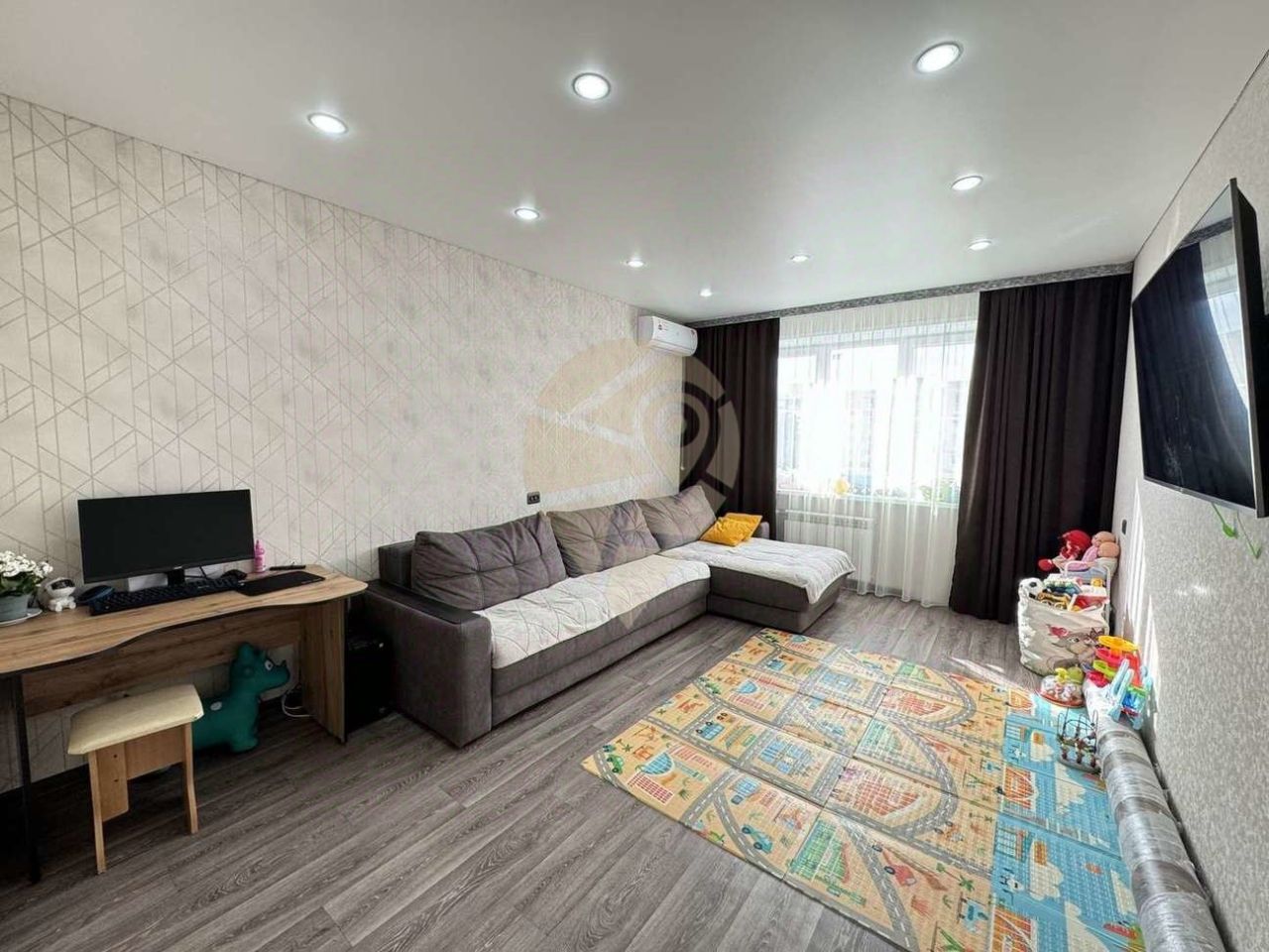 • Сделан современный ремонт везде, кроме кухни. • Окна- ПВХ, • Балкон - остеклен, • Потолок натяжной, • Напольное покрытие - линолеум, • Хорошие межкомнатные двери, • Установлены счетчики на воду и на свет, • Новые сантехнические трубы, • Санузел раздельный в кафеле до потолка, • Новые радиаторы отопления, • Вся мебель остается при продаже .