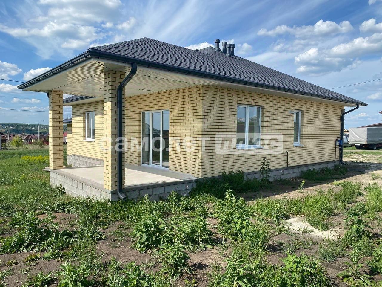 Арт. 124156241 ДОМ ВАШЕЙ МЕЧТЫ - ЭТО РЕАЛЬНОСТЬ!!! ЗВОНИТЕ!!! ДОМ от юр. лица, под ключ 140 кв.м. участок ровный 8 соток. Планировка: прихожая - коридор, просторная кухня - гостиная с выходом на террасу, три изолированные спальные комнаты, 2 сан узла, гараж.
