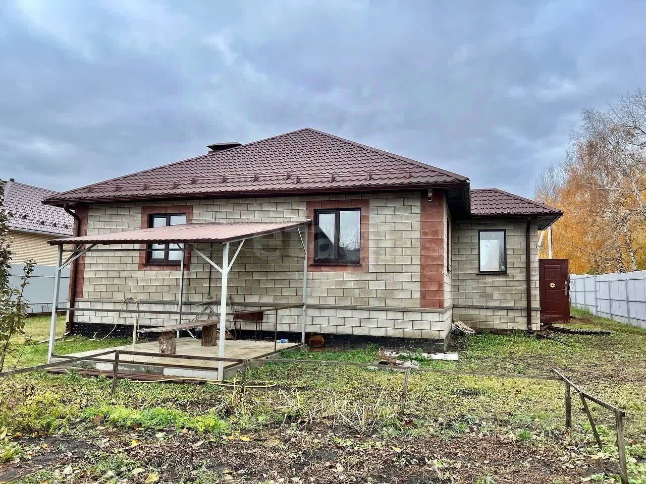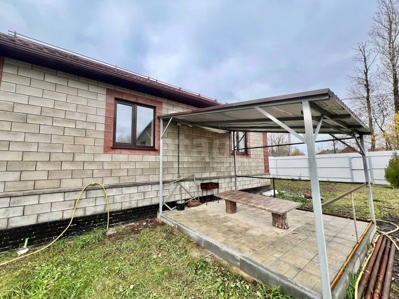 Сзади дома расположен навес, на котором уложена плитка.