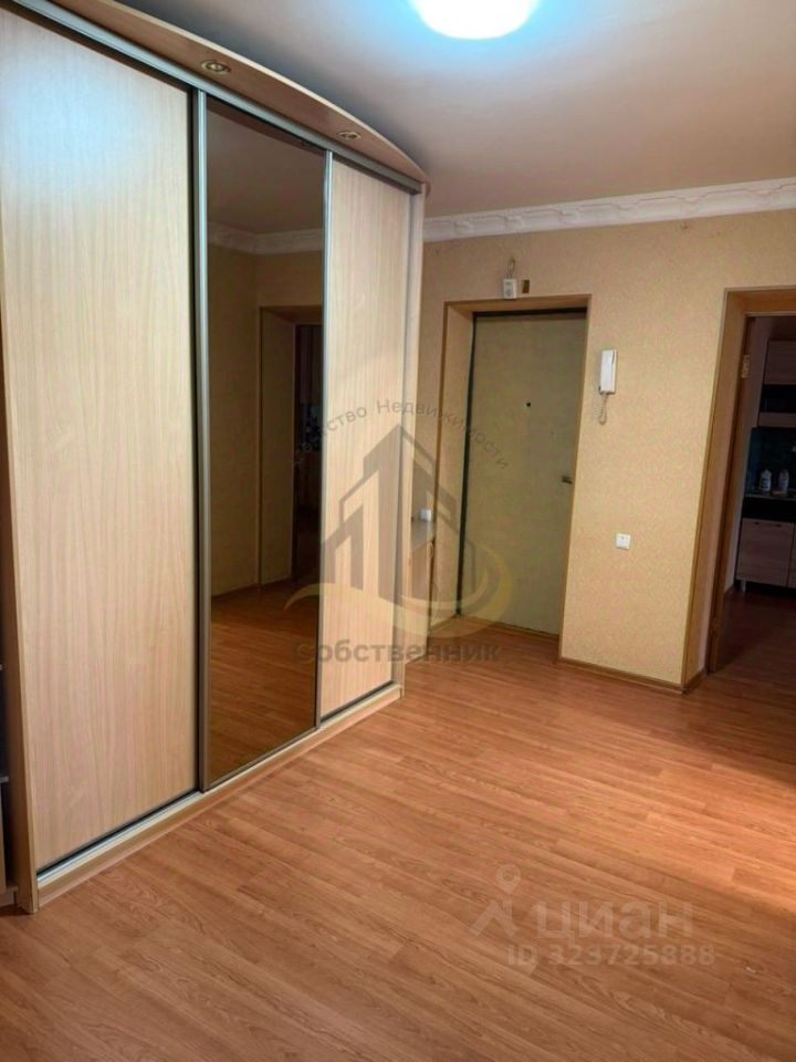 В квартире: большой шкаф купе, диван, кухонный гарнитур, плита, вытяжка.