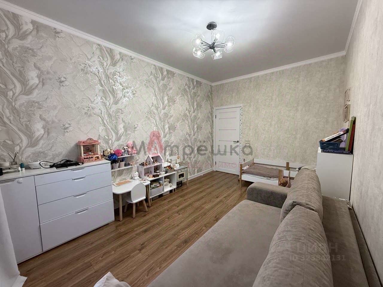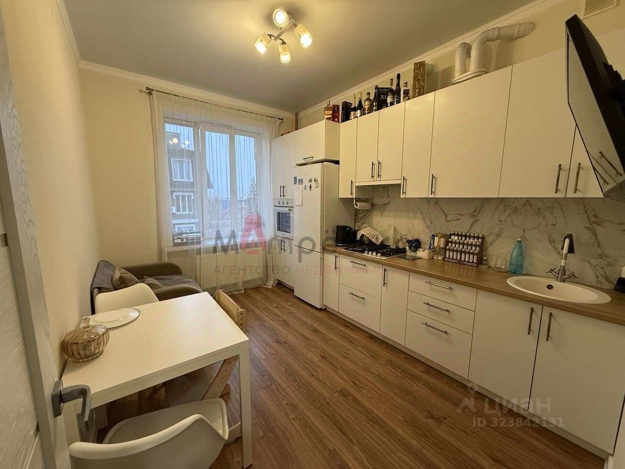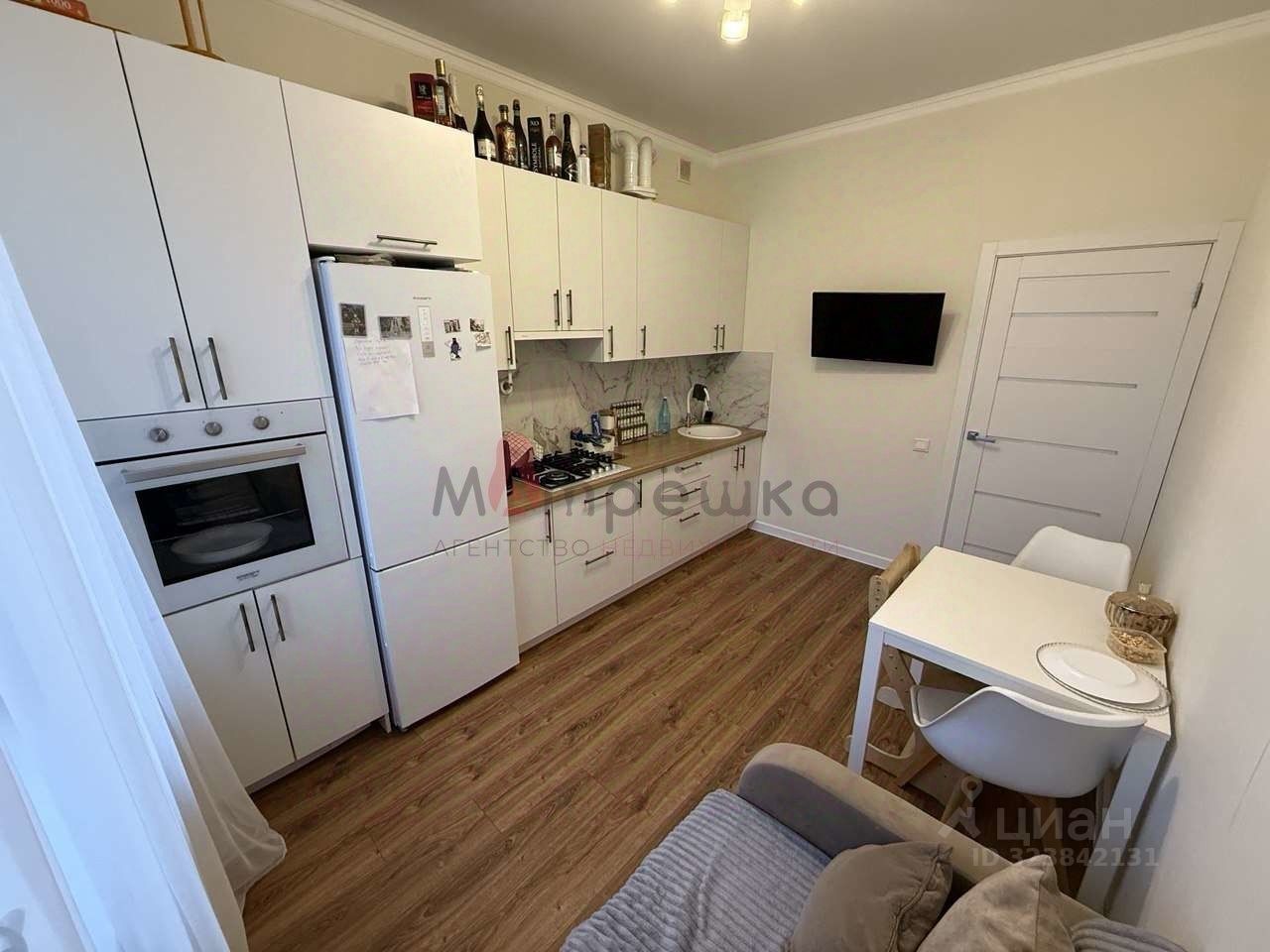 Новым собственникам остается кухонный гарнитур, варочная панель, вытяжка, диван на кухни, комод.