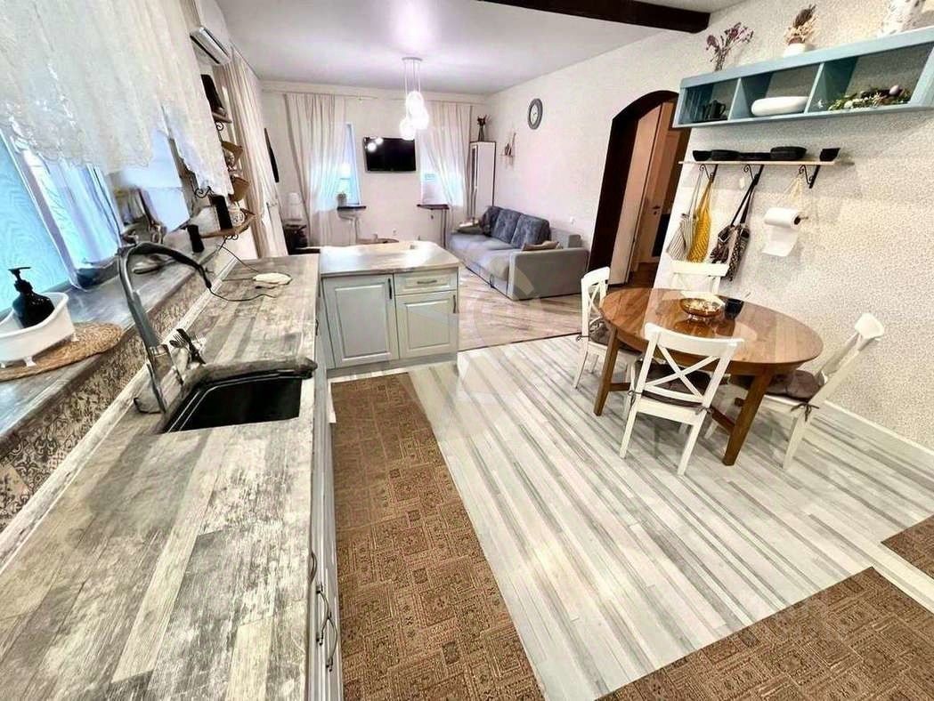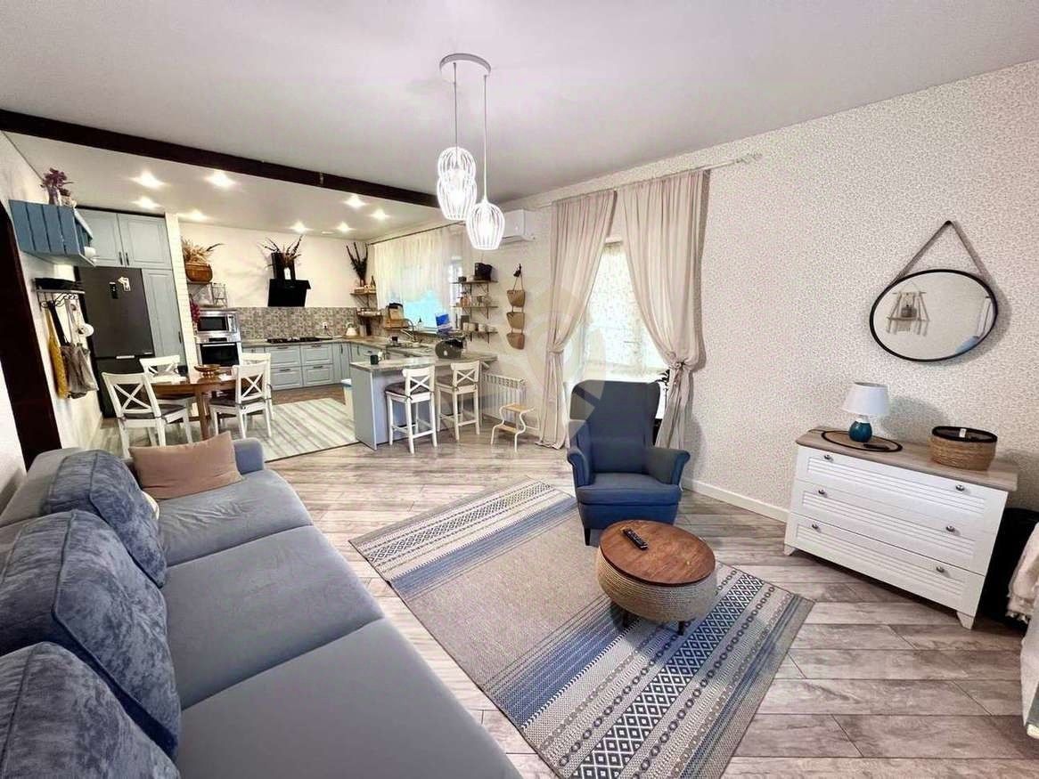 • Прихожая, • Холл, • Просторная кухня + гостиная, • Три спальные комнаты, • Два санузла, • Котельная, • Терраса.