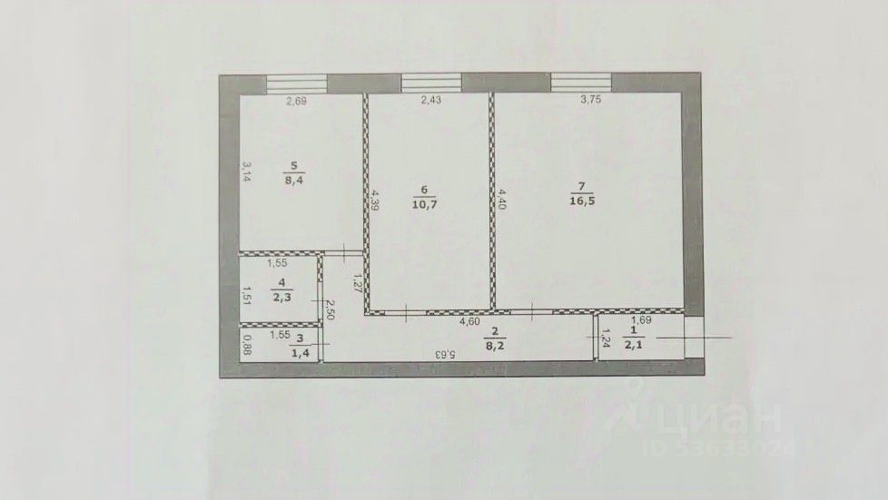 Общая площадь49,6 м2
