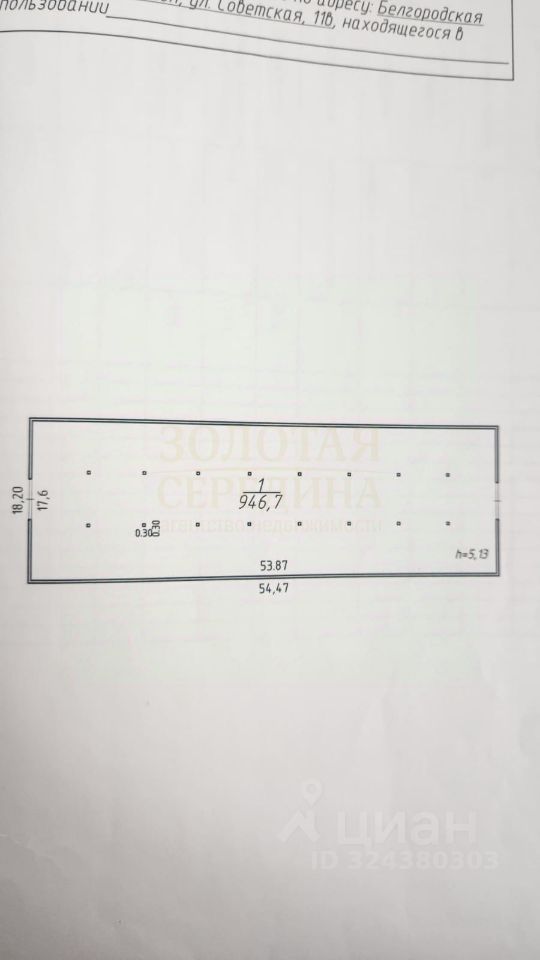 1. Помещение площадью 946,7 кв.м. Высота 5,13 м.