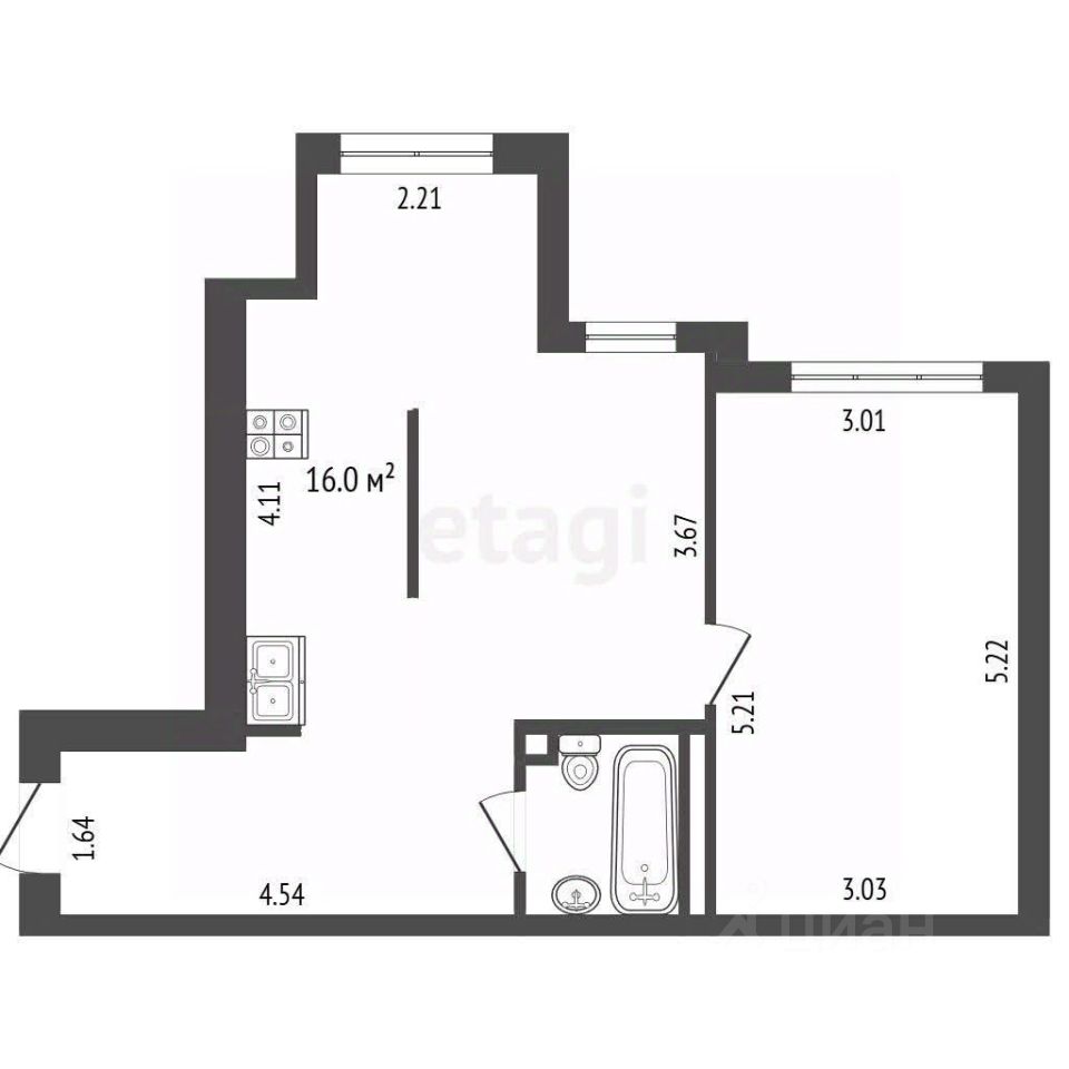 - Санузел (установлена ванна)