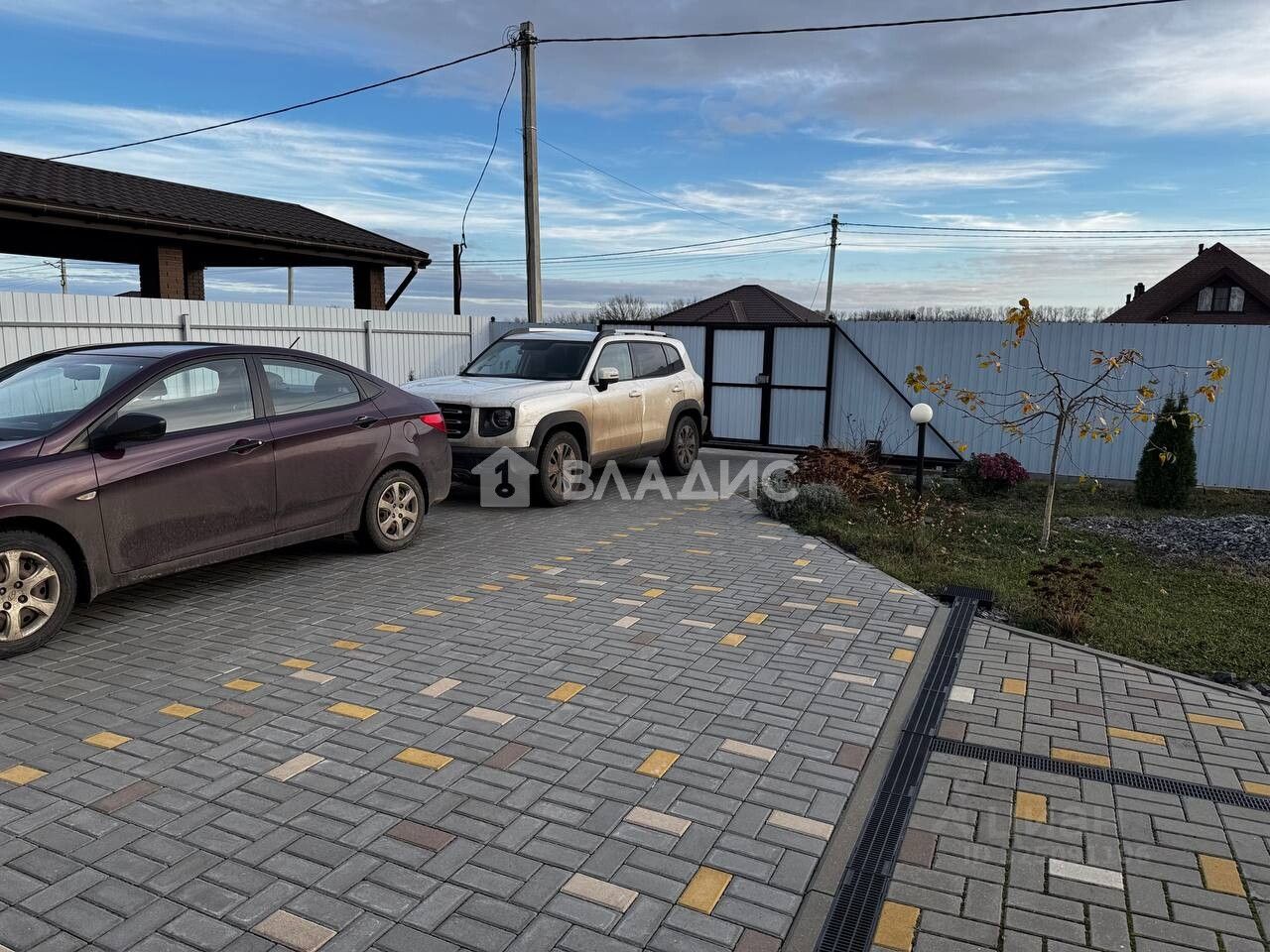 Вся территория — и вокруг дома, и вокруг гостевого домика, и просторные площадки для парковки (два места внутри и три снаружи) — выложена аккуратной тротуарной плиткой. Гостевой дом расположен так, что можно сделать навес для автомобилей до ворот.