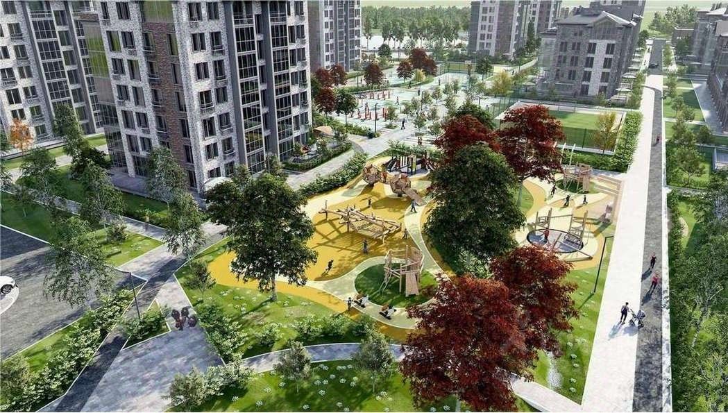 Уделено большое внимание благоустройству жилого комплекса. Это уникальные общественные пространства для семейного досуга, детские и спортивные площадки, велодорожки и велопарковки, с бульварами и площадями, общественными террасами, плодовыми садами и уютными лаундж-зонами.