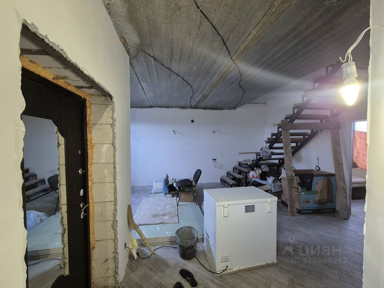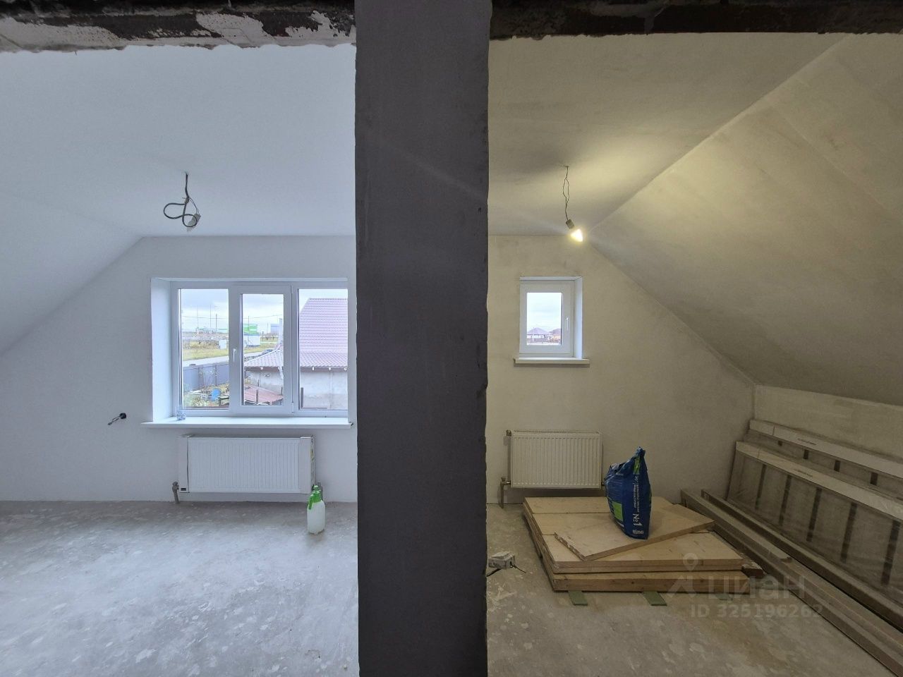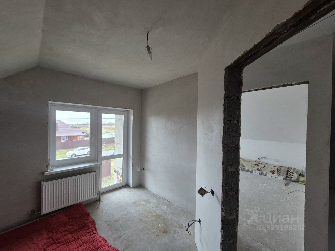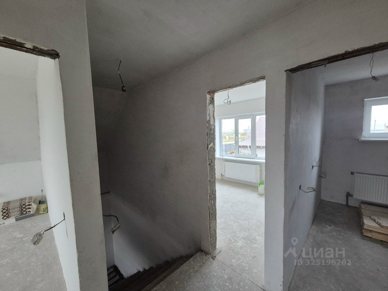Все стены белые (оштукатурены), чистовая стяжка пола, санузел в кафеле, заведены все коммуникации и сделаны разводки/выводы, потолки полностью готовы. ПЛАНИРОВКА: На 1-ом этаже кухня-столовая, гостиная, раздельный санузел, место под гардеробную при входе. На второй этаж сделан полноценный (постоянный не временный) каркас лестницы! На 2-ом этаже три изолированных комнаты + помещение 7,6 кв. м. под гардеробную или санузел. В одной из комнат на втором этаже есть балконная дверь (сам балкон требует доделки).