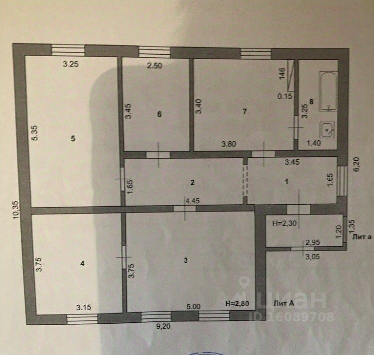 Высокие потолки 2,8 м.
