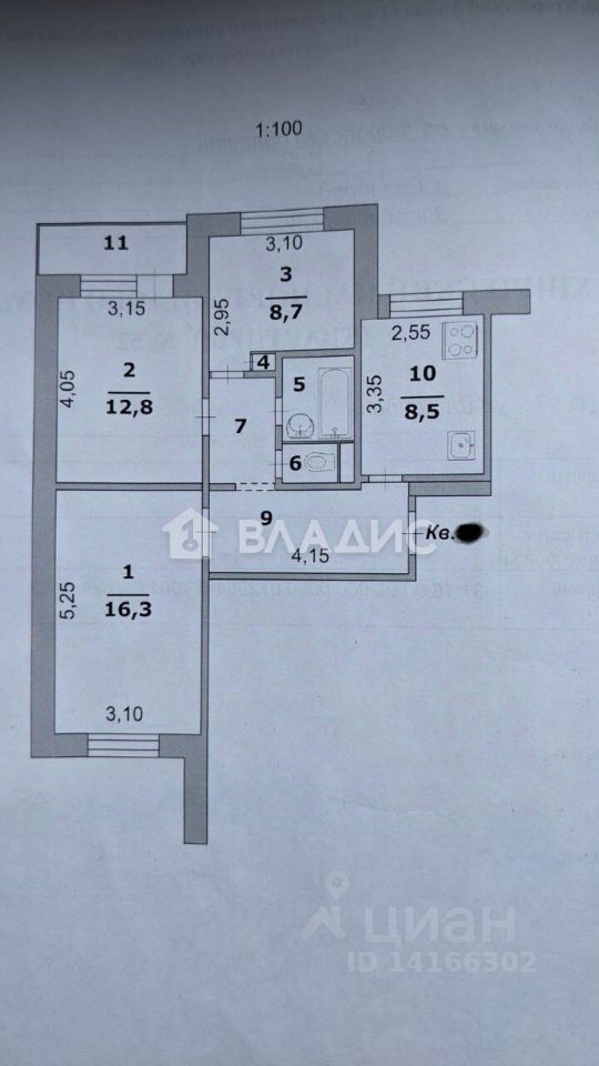 Квартира расположена на 4 этаже 9-этажного панельного дома 1983 года постройки. Общая площадь составляет 60,7 кв. м, из которых 38 кв. м — жилая площадь. Высота потолков — 2,7 м, что создаёт дополнительное ощущение простора. Комнаты изолированы, окна выходят на улицу.