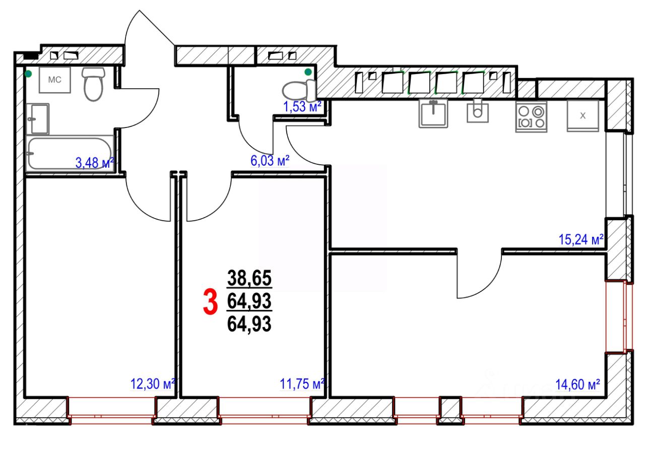 Продаётся 3-комнатная квартира в строящемся доме (Позиция 6 Блок-секция V-VI), срок сдачи: IV-кв. 2026, общей площадью 64.93 кв.м., на 4 этаже. Расположение, транспортная доступность Загородный микрорайон ''Новосадовый'' расположен в живописной местности, недалеко от реки Северский Донец, а также Борисовского и Молдавского лесов. Этот экологически чистый район является ближайшим к Белгороду. Основное сообщение с городом обеспечивает автобус 104, который ходит с промежутком пятнадцать минут с 6:00 до 20:00. Расстояние между Белгородом и жилым комплексом ''Новосадовый'' - около 11 км, до города на машине можно добраться за считаные минуты. Время в пути на общественном транспорте составит не более получаса. Инфраструктура Новостройка расположена в районе с налаженной инфраструктурой. В пяти минутах ходьбы от нее работают: начальная школа, детский сад ''Лучик'', парикмахерская ''Альфа'', продуктовые магазины. В радиусе километра от дома расположено несколько парковых зон с местами для отдыха, стоянками для пикников и дорожками для пеших и велопрогулок. Надежность застройщика Возведением и обслуживанием микрорайона занимается лидер в сфере строительства Белгородской области - компания ''ДСК''. Застройщик работает над развитием региона с 1975 года. За время своего существования предприятие сдало в эксплуатацию более 2,5 млн. кв. метров жилья, объектов коммерческого и социального назначения. Это примерно четверть всего жилого фонда Белгорода. Помимо непосредственного возведения жилых комплексов и микрорайонов СК занимается организацией прилегающей инфраструктуры и обеспечивает новостройки управляющими компаниями. Кроме того, ''Домостроительная компания'' первой в Белгороде организовала систему долевого строительства, предлагая ее участникам выгодные расценки на жилье, одной из первых в стране наладила массовое строительство домов с поквартирным отоплением. Среди партнеров СК: известная в регионе риэлтерская компания ''Салонъ недвижимости'', ОАО ''Белгородпромстройбанк'', ряд подрядных строительных и инженерных организаций. Архитектура Жилой квартал ''Новосадовый'' состоит из нескольких объединенных в единый комплекс зданий разного формата: на большой площади застройки расположены коттеджи, таунхаусы, а также малоэтажные и высотные дома. Первый комплекс зданий состоит из семи блоков. В I и II блоках можно выбрать двух-, трех и четырехкомнатные квартиры на этажах с первого по пятый. В здании третьего блока расположены одно- и трехкомнатные квартиры. IV блок представляет собой семиэтажное здание с одно- и двухкомнатным жильем. Второй комплекс объединяет четыре пятиэтажных дома с одно- и двухкомнатными квартирами. При возведении стен зданий применяются кирпич, монолит и панели. Квартиры в монолитных постройках передаются собственникам готовыми к отделке. ''Новосадовый'' относится к жилым комплексам класса ''комфорт''. В подъездах выполнены улучшенная отделка и панорамное остекление на лестничных клетках. В новостройке к продаже представлено 448 квартир. Метраж однок
