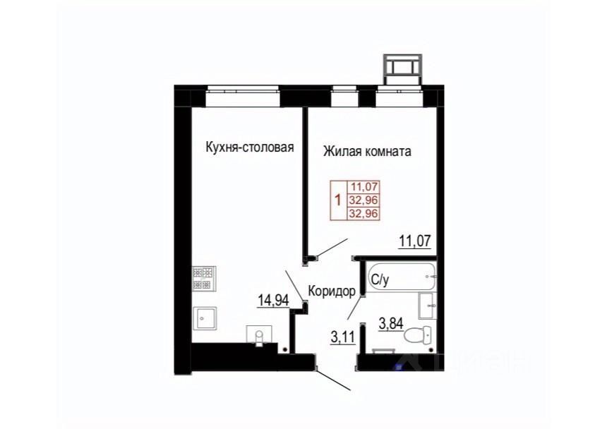 Общая площадь32,96 м2