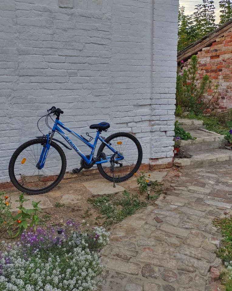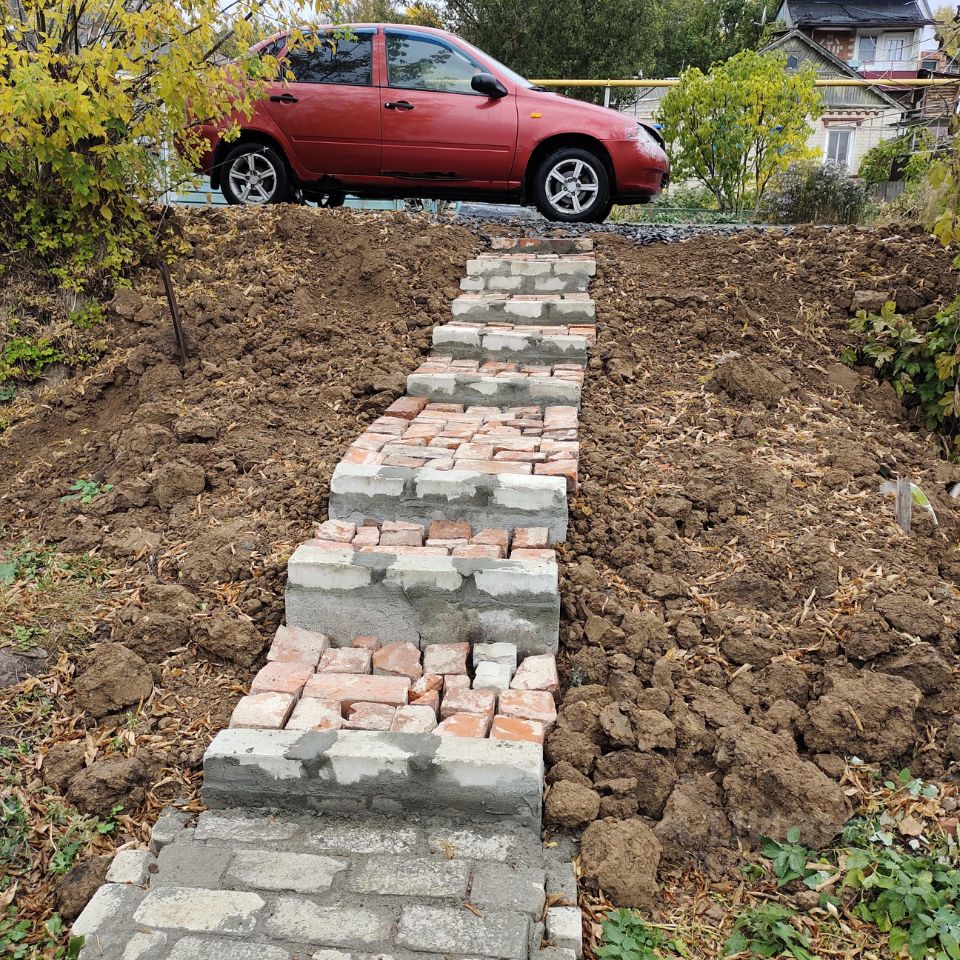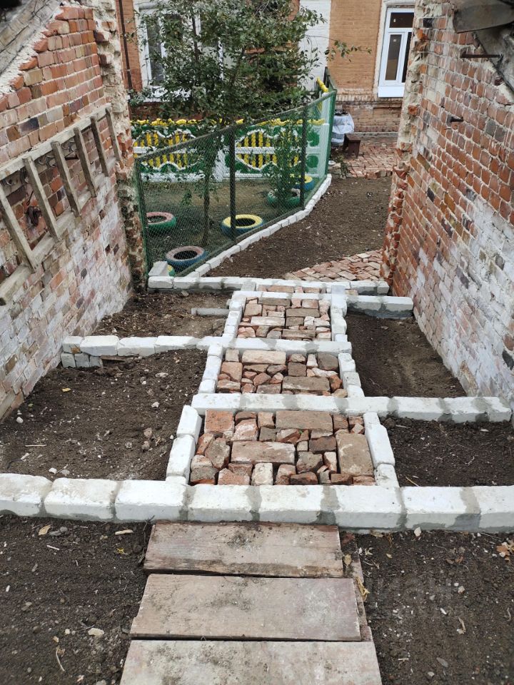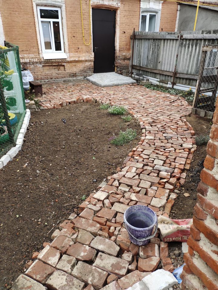 Свой огороженный двор уложен красным кирпичом.