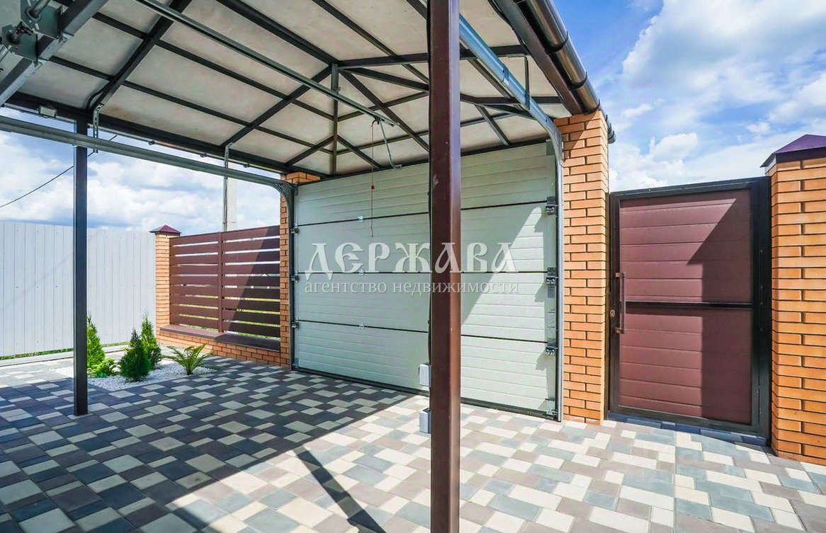 Гараж с автоматическими воротами и навес для автомобиля.