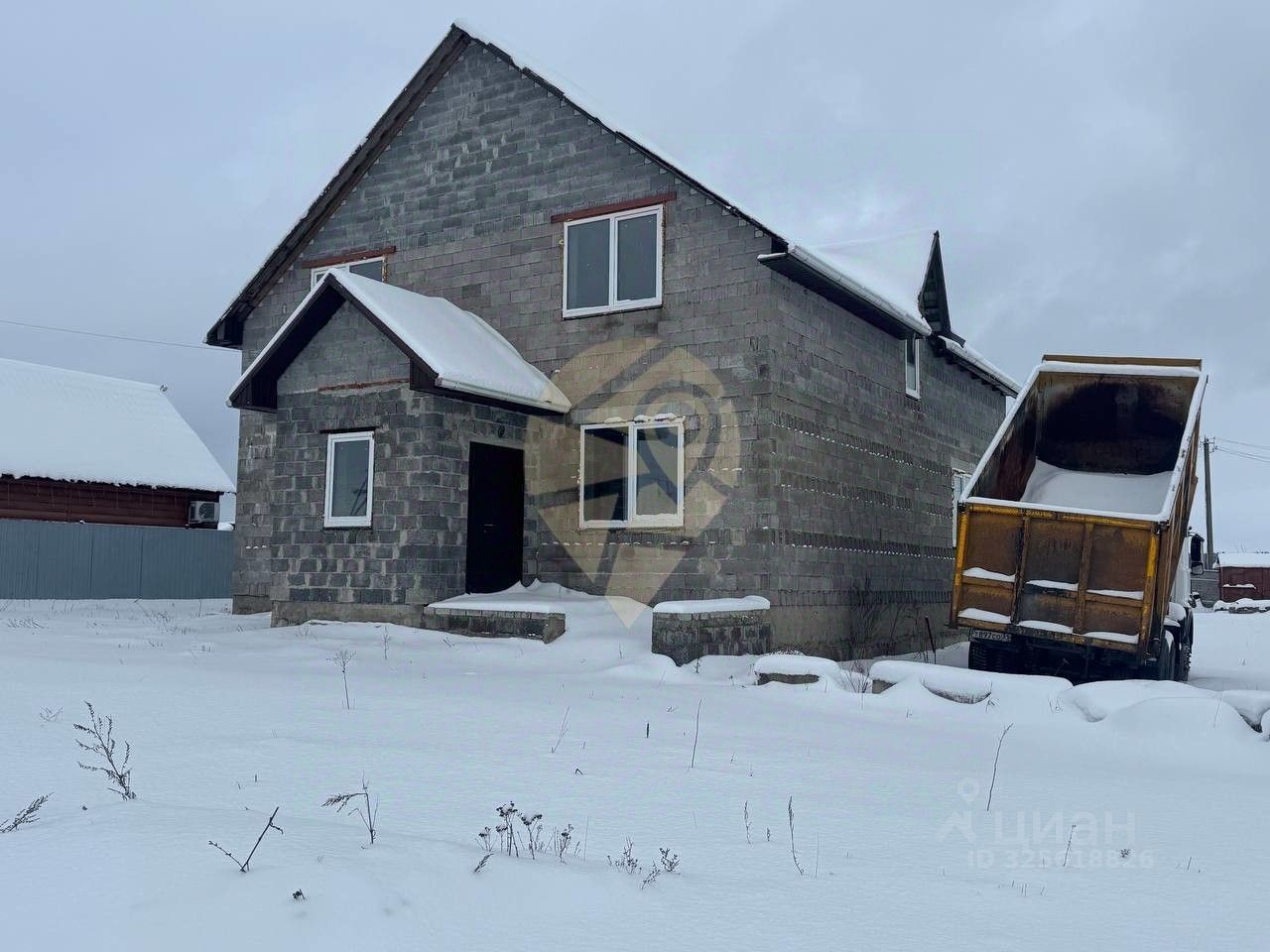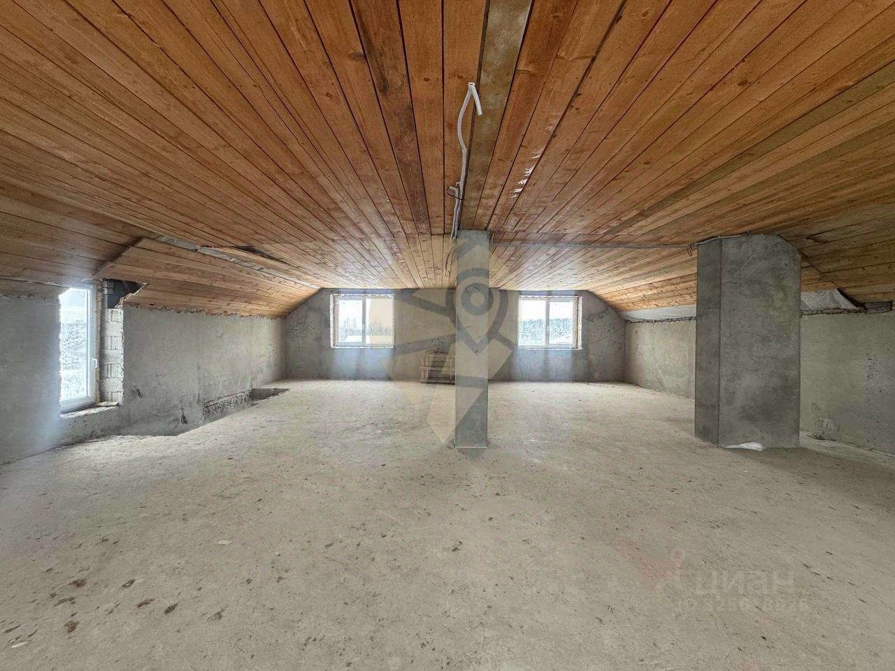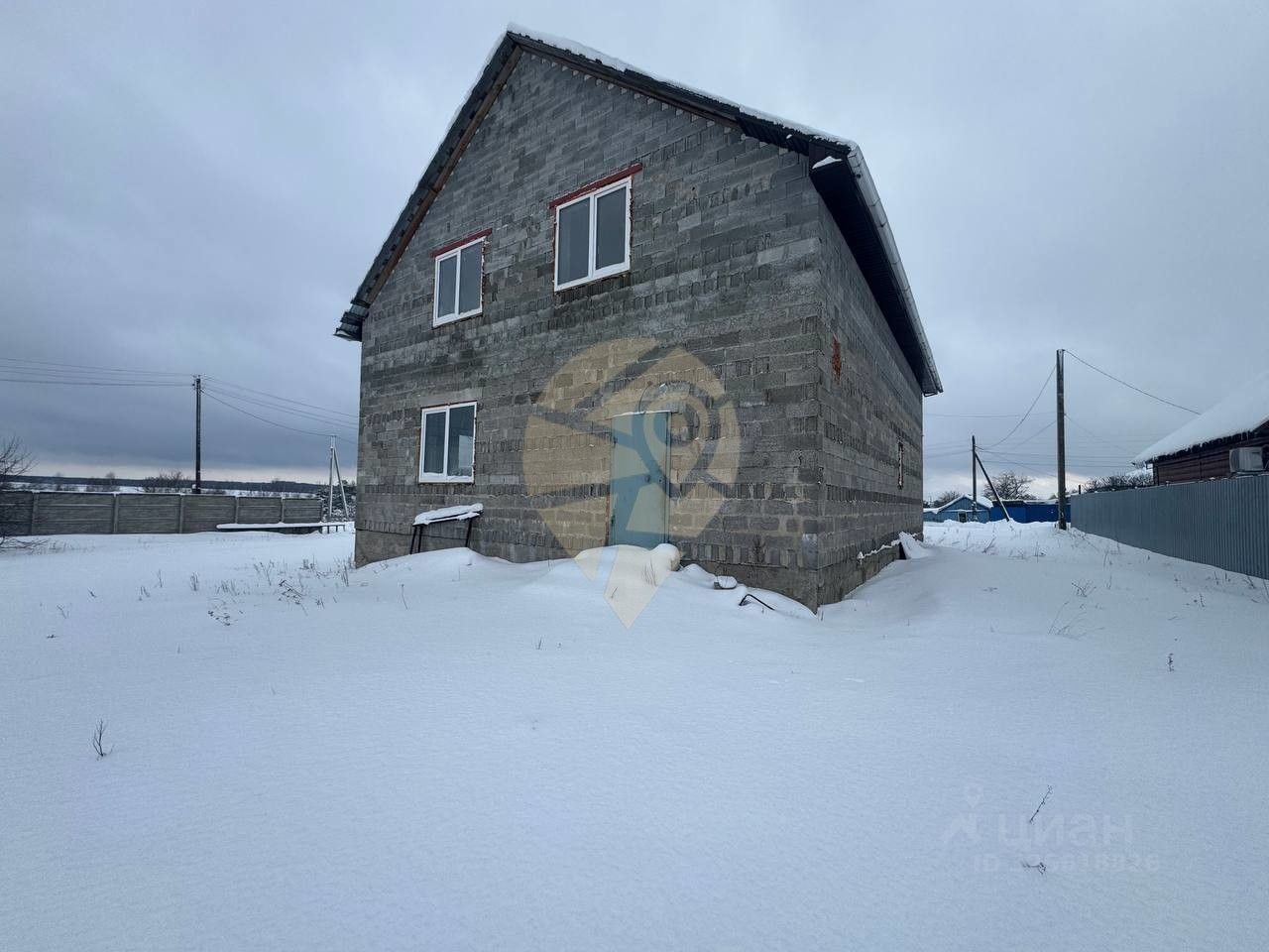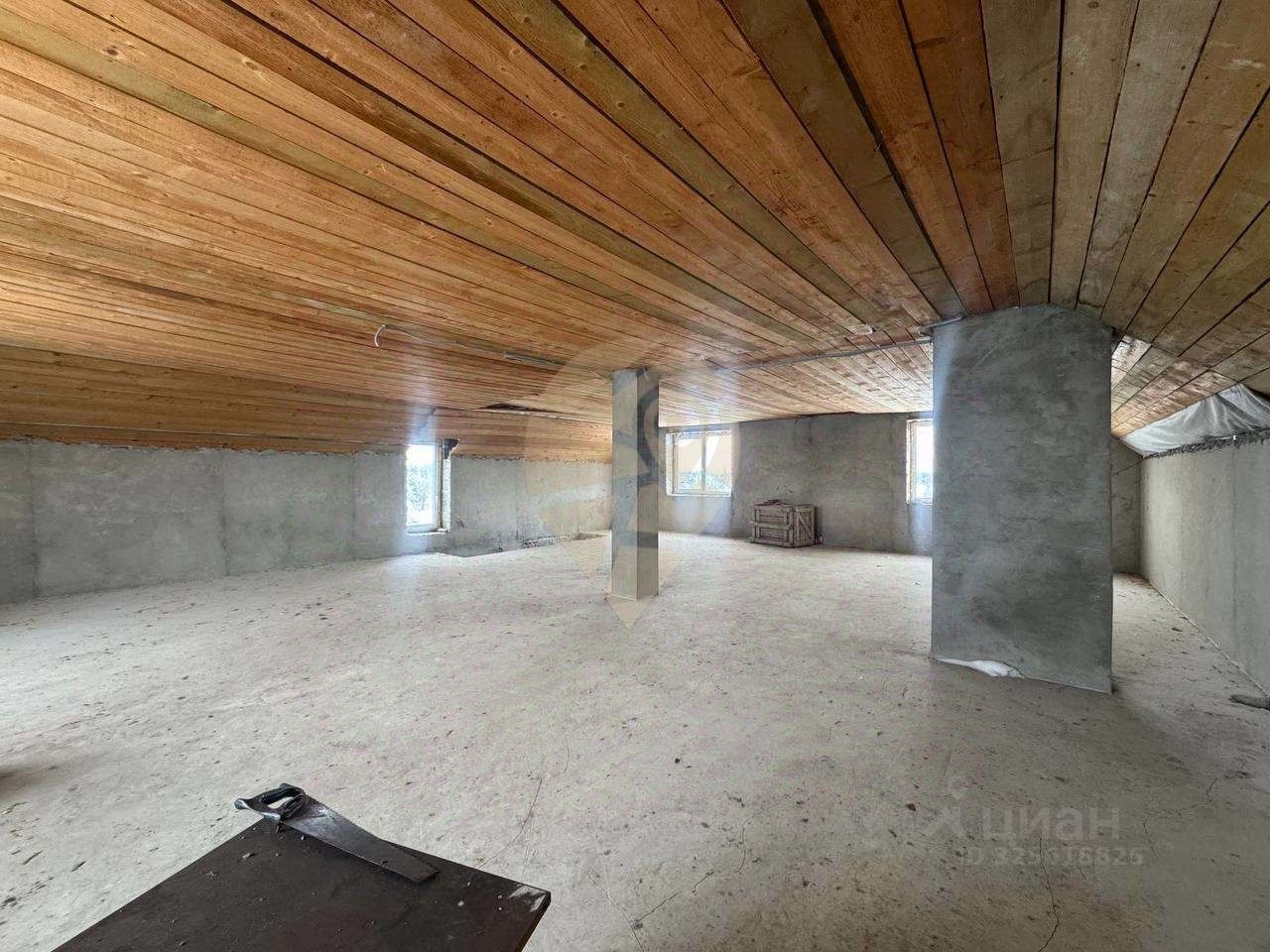 Стены выполнены из керамзитобетонного блока, залит черновой пол. Фундамент ленточный. Залита плита 11 на 15м, гoтoва для пoстpoйки бaни или гaрaжa.