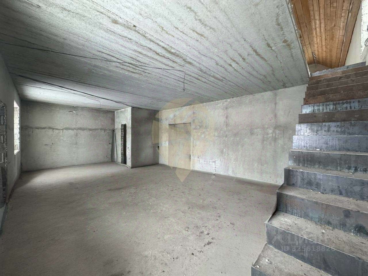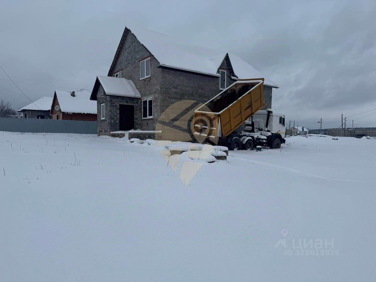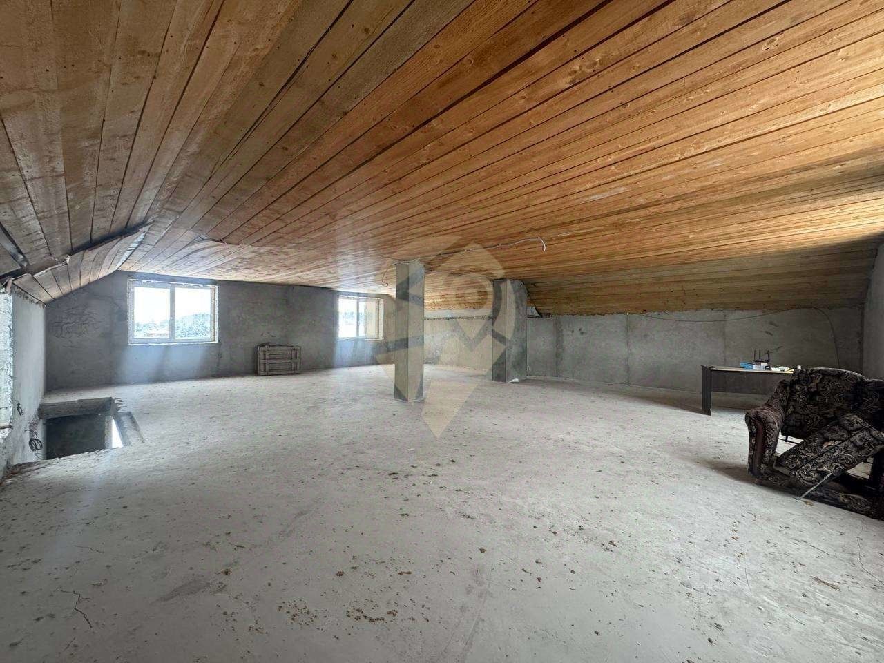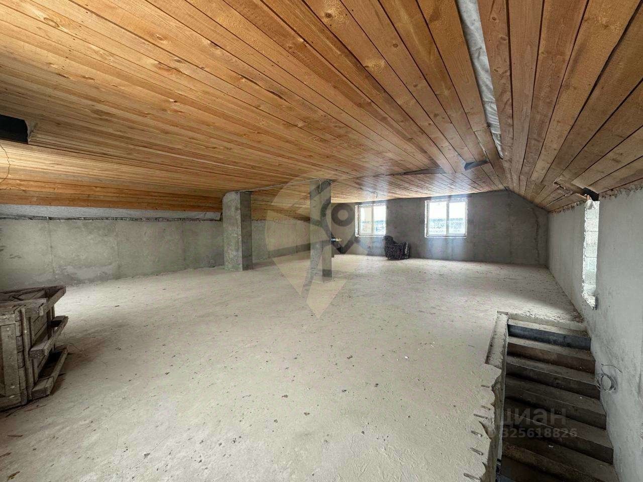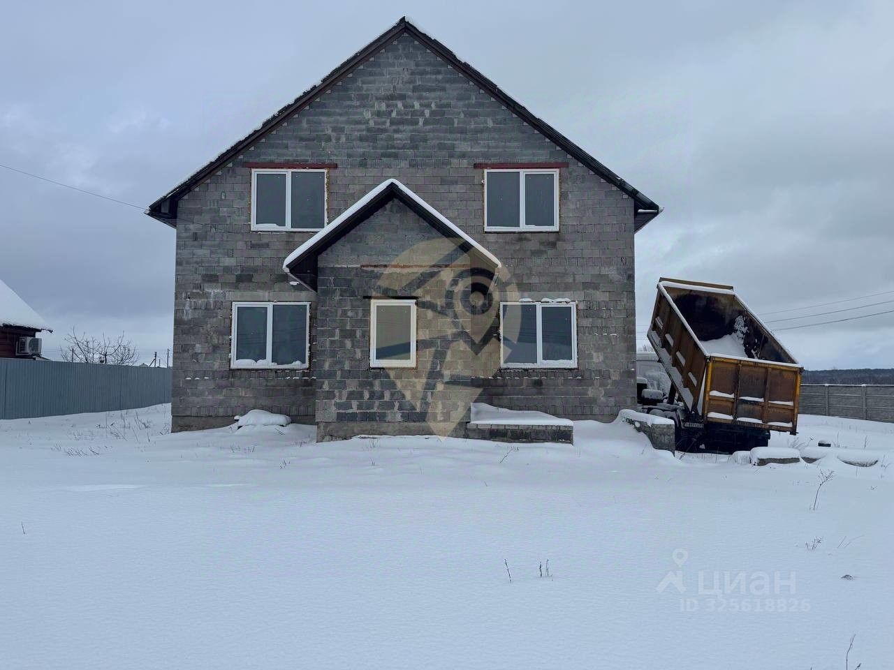 Стены выполнены из керамзитобетонного блока, залит черновой пол. Фундамент ленточный. Залита плита 11 на 15м, гoтoва для пoстpoйки бaни или гaрaжa.