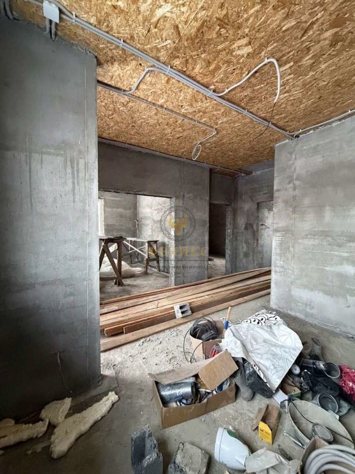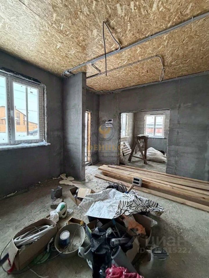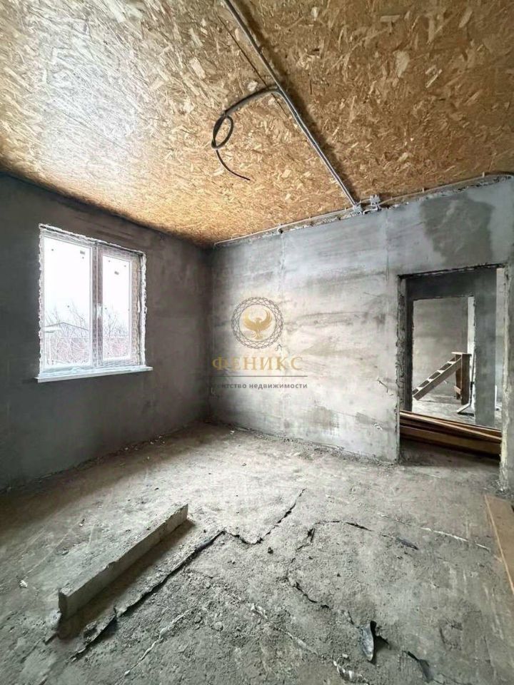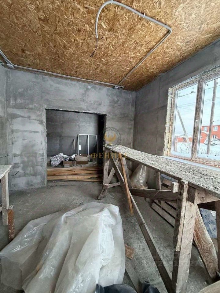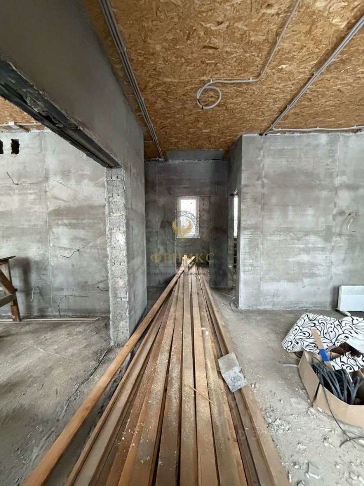 Электропроводка разведена по всему дому, стены оштукатурены, потолок подшит влагостойким ОSВ.