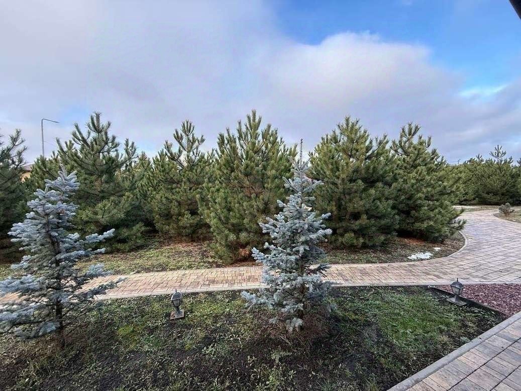 Вся территория облагорожена и благоустроена. Зона прогулки вымощена плиткой, хвойники и другие насаждения.