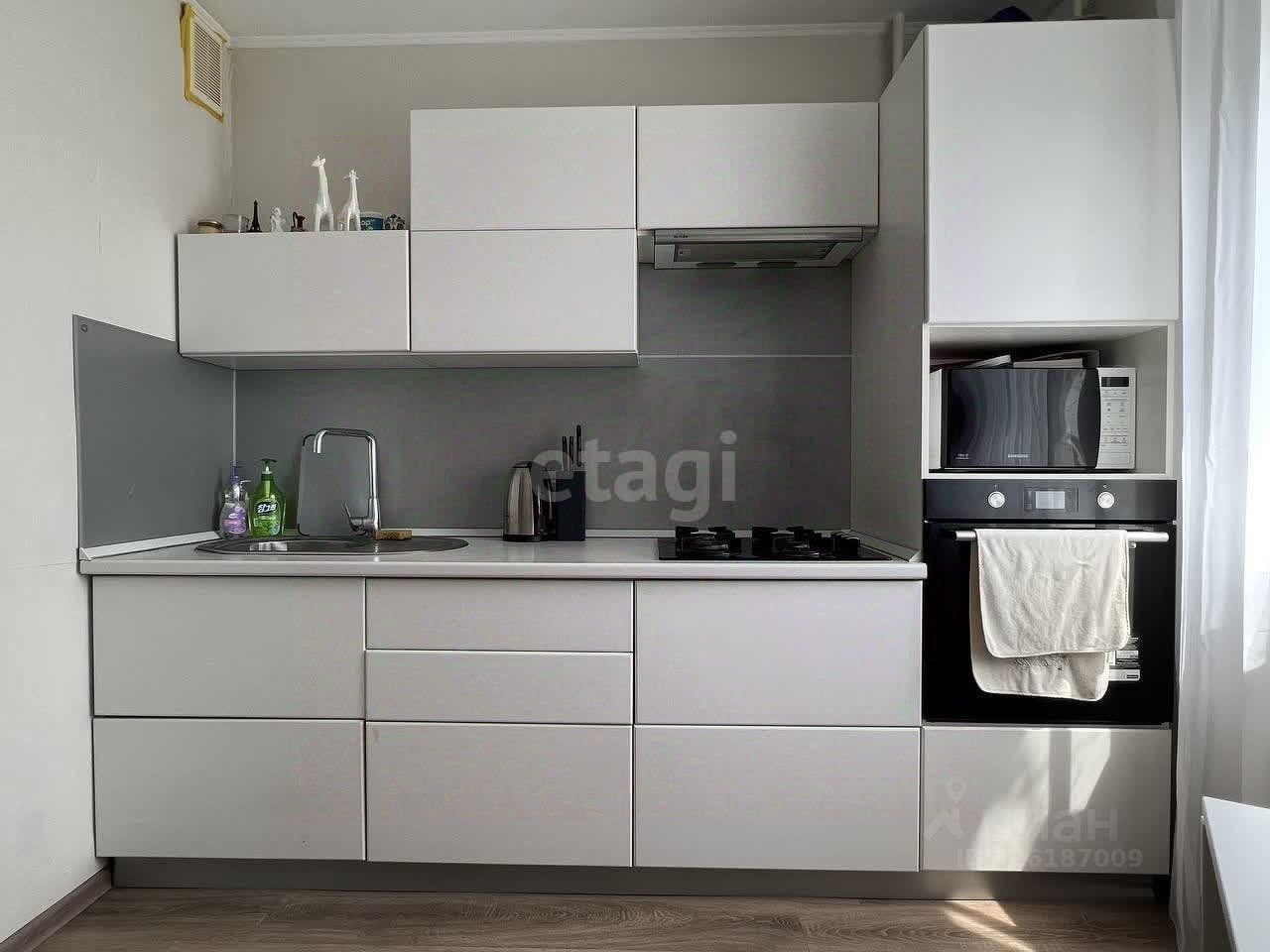 Ключевые преимущества: * Современный ремонт: Не нужно вкладываться. Можно заселяться и жить. * Отличная планировка: Просторная комната (17,1 м²), светлая отдельная кухня (8,8 м²) и совмещенный санузел. * Частичная меблировка: Остаются кухонный гарнитур, шкаф-купе, рабочий стол, обувница и кондиционер. Остальное — по договорённости. * Высокий этаж (8/10): Много света, панорамный вид и отличная циркуляция воздуха. * Центральное отопление: Никаких хлопот с обслуживанием.