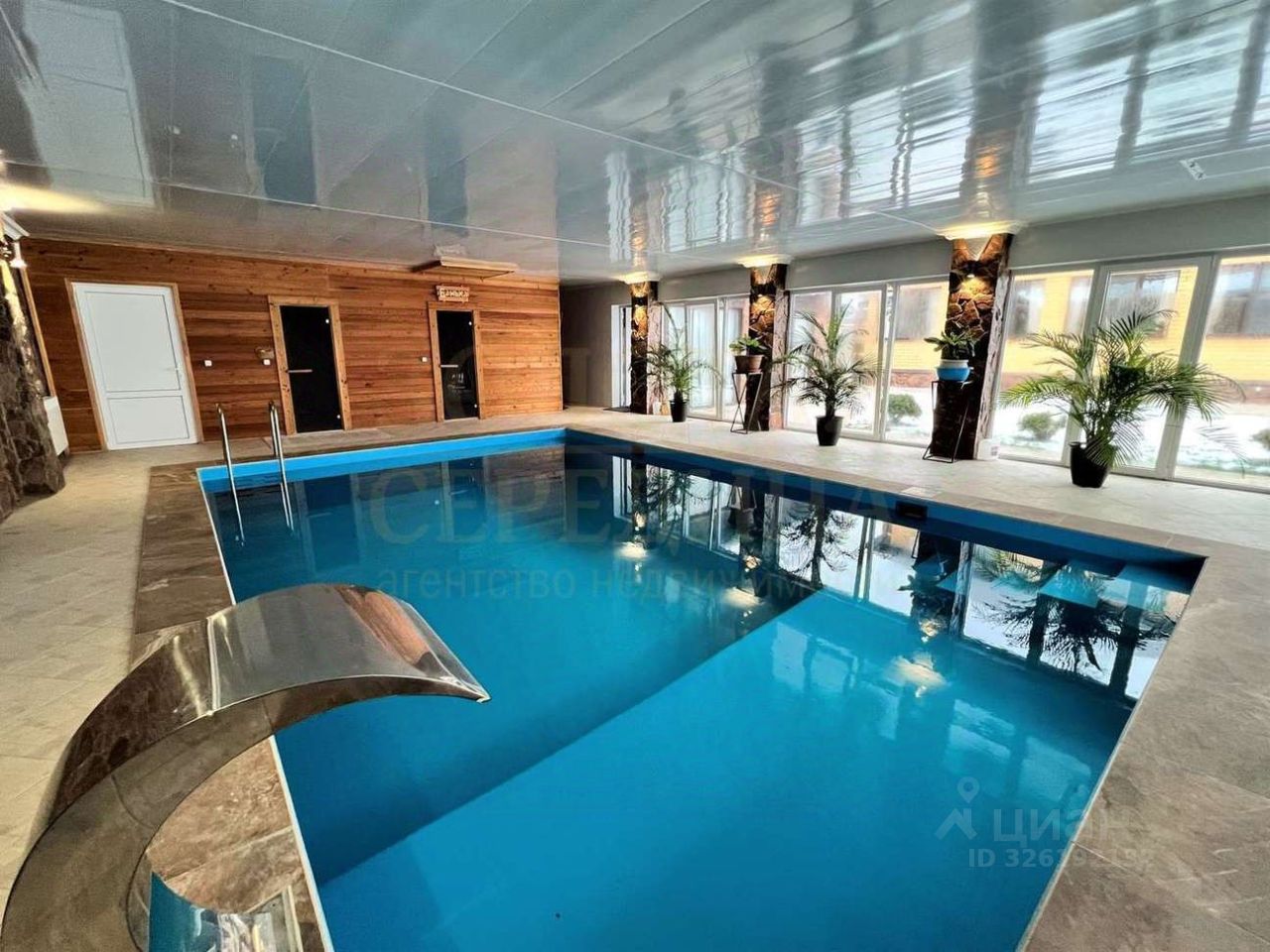 Баня с бассейном в два уровня. Парилка, солевая комната, с/у, душевая, топочная внутри. Так же имеется подвальное помещение.