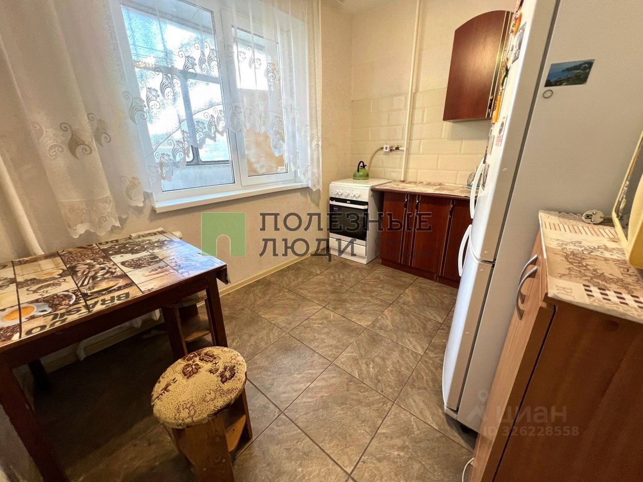Квартира в хорошем состоянии. На кухне пол выложен плиткой, в комнате — ламинатом. Окна оснащены стеклопакетами. Квартира чистая, не прокурена. Комната имеет правильную форму, а балкон, который утеплён, выходит на всю квартиру. Холодильник и плита практически новые. Вся мебель остаётся новому владельцу.