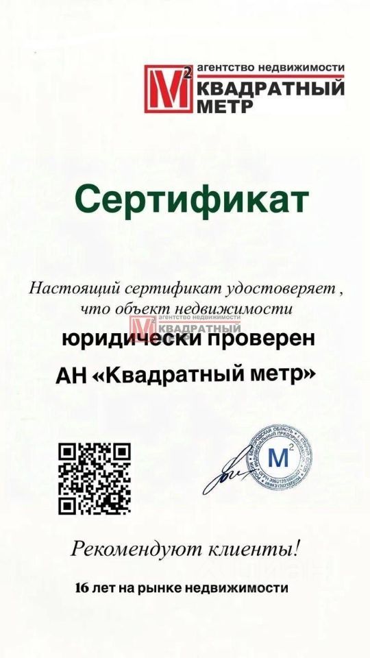 АН Квадратный метр- ваш надежный партнер! Работаем честно и прозрачно 16 лет на рынке недвижимости! Поможем в одобрении ипотеки! Сделаем экспертную оценку!