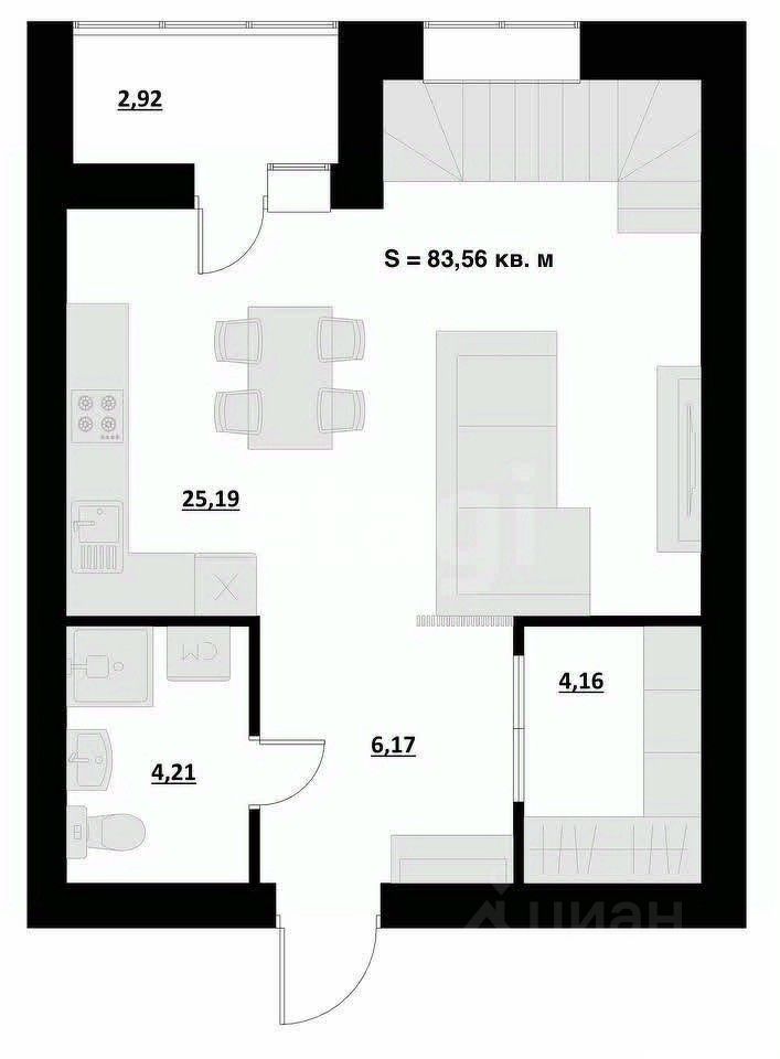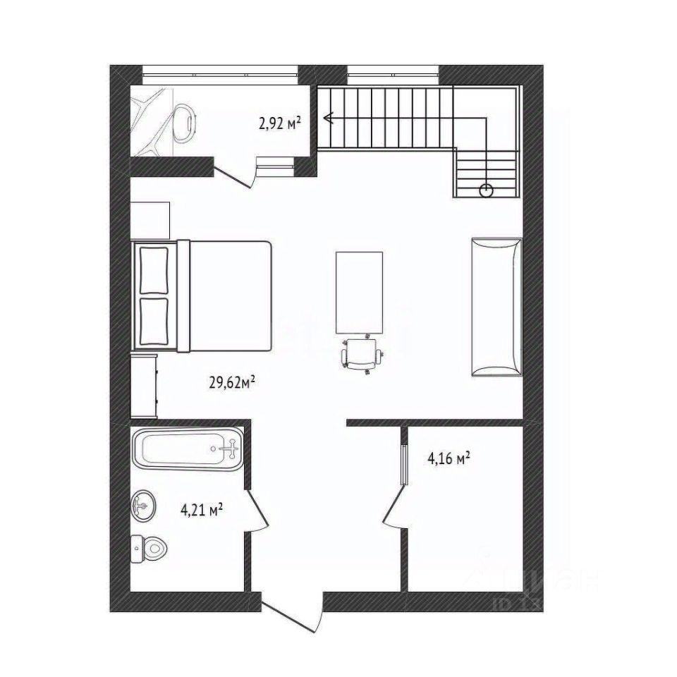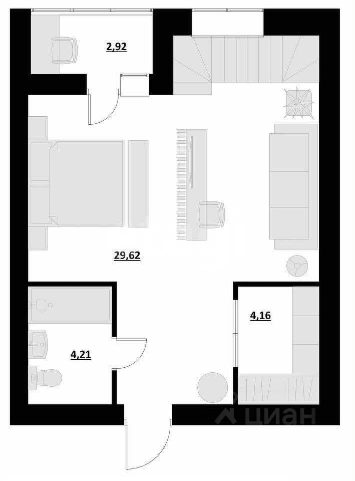 Свободная планировка квартиры позволяет реализовать функционал для семей с двумя/тремя поколениями. Например: 1-й этаж может использоваться старшим поколением, а 2-й этаж может быть использован для 2-х спален детей, или одной детской и одной мастер-спальни со своим санузлом и отдельной гардеробной. Высота потолка на втором уровне квартиры — 4,2 метра!