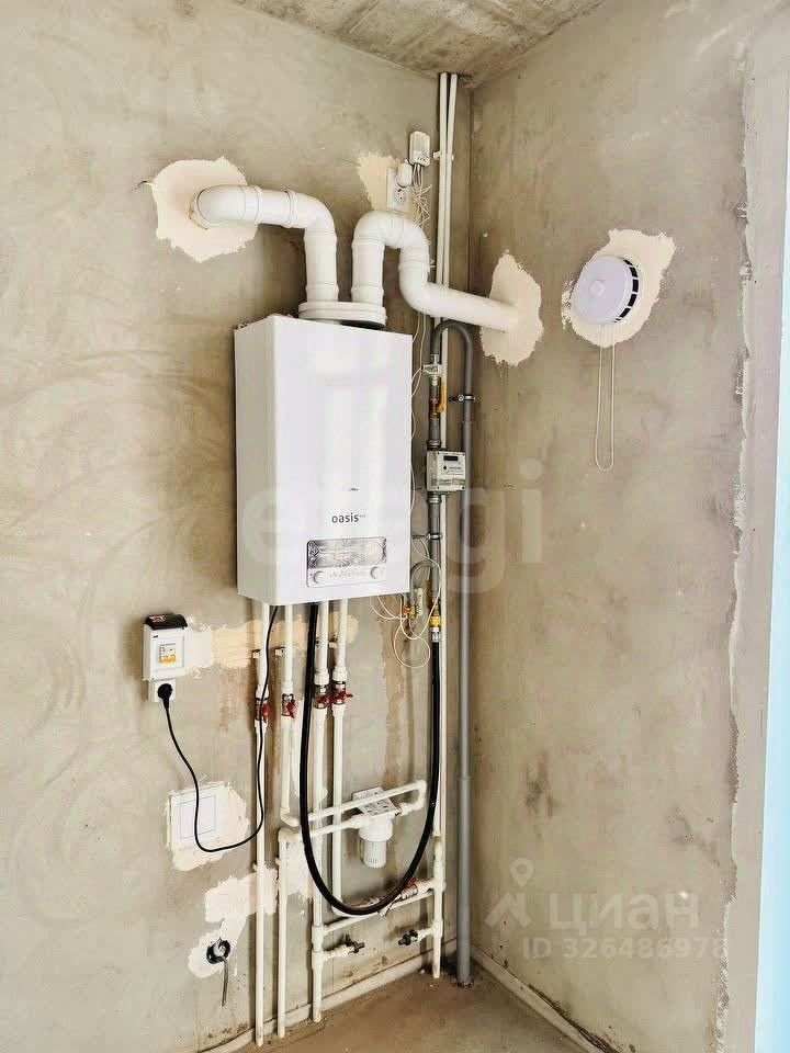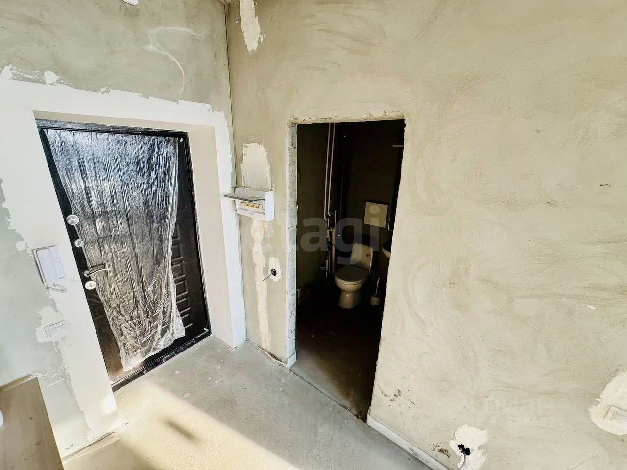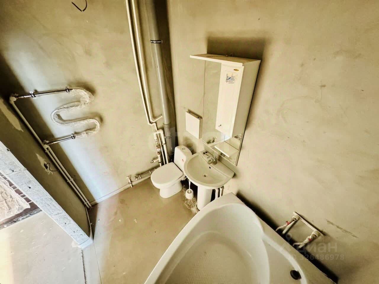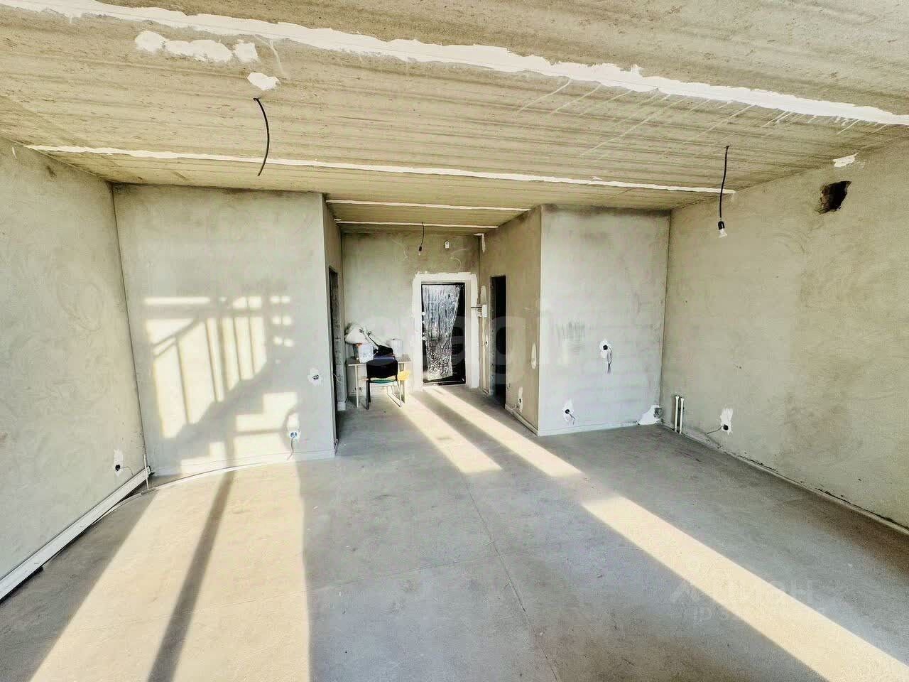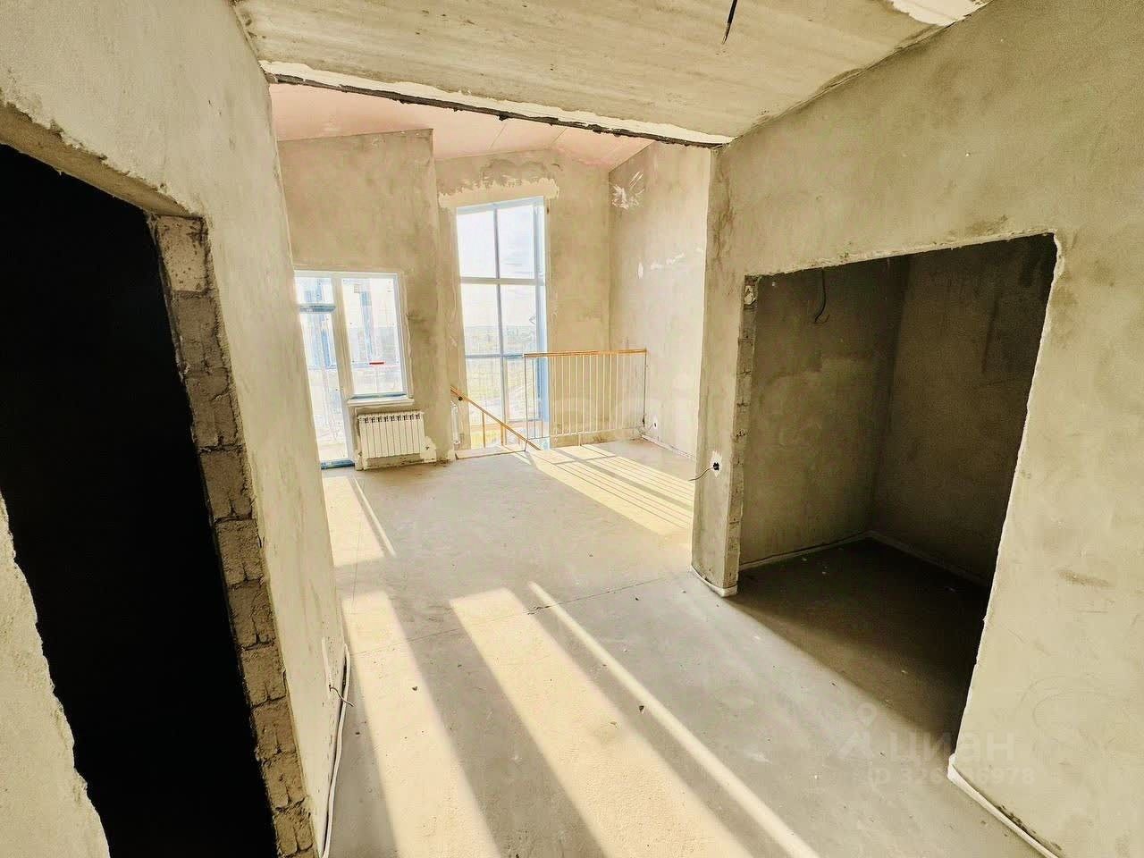 В квартире предчистовая отделка: стены выровнены и оштукатурены, выполнена разводка электрики, произведена разводка системы водоснабжения и канализации, установлены радиаторы, установлена лестница на косоурах ''от застройщика''.