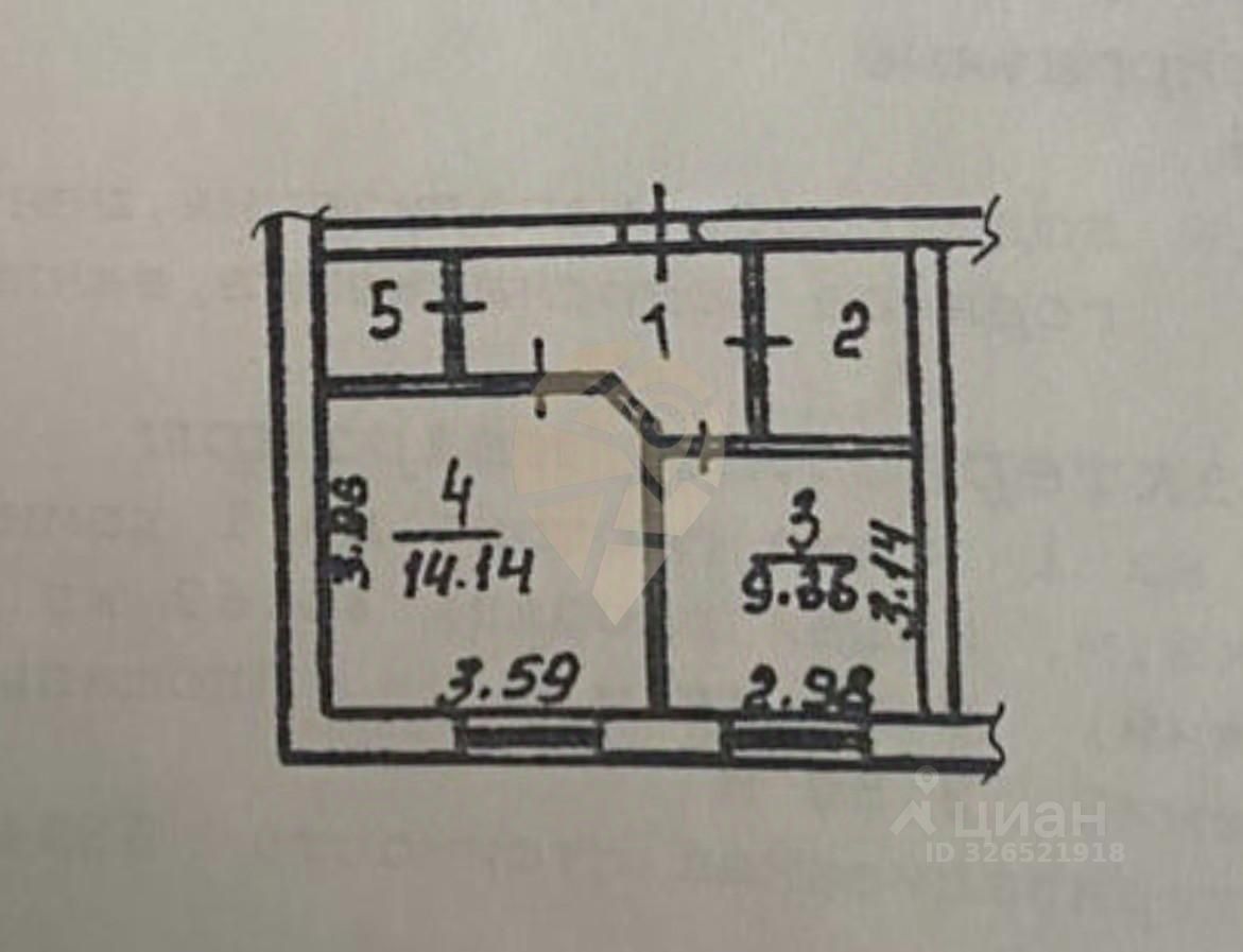 • Коридор - 6.04 кв. м, • Санузел - 3.93 кв. м, • Кухня - 9.36 кв. м, • Жилая - 14.14 кв. м, • Кладовая - 2.22 кв.м