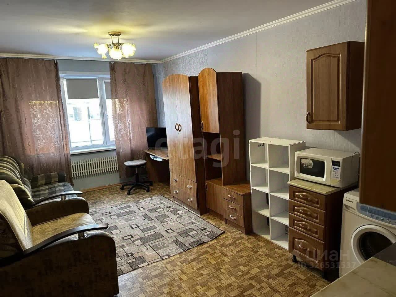 В квартире выполнен косметический ремонт. Здесь вы найдете все необходимое: удобный диван и кресло для отдыха, стенку для хранения вещей, а также холодильник, электрическую плиту и стиральную машинку для вашего удобства.